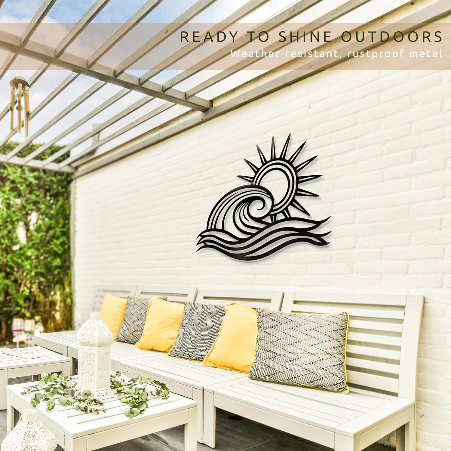 • STYLISH COASTAL DESIGN: Featuring an intricate ocean wave and sun motif, this coastal wall sculpture adds a touch of nautical elegance to any space. Its sleek, modern design complements various decor styles, making it a versatile addition to your home or garden.