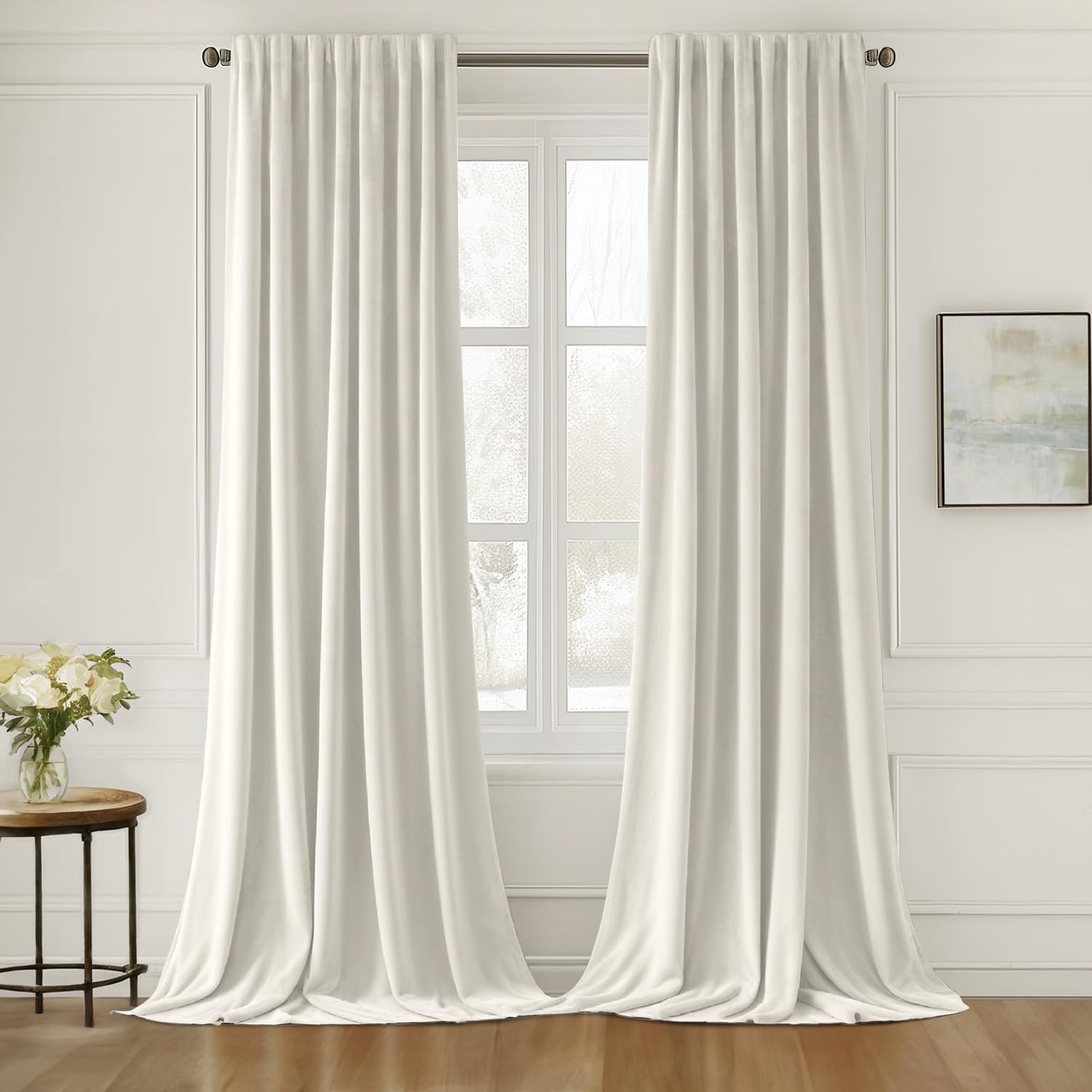 MIULEE Ivory White Velvet Curtains 90 inches Long 2 Panels - Luxury Pinch Pleated Room Darkening Window Drapes for Bedroom Living Room Thermal Insulated Super Soft, Back Tab Rod Pocket Elegant Decor