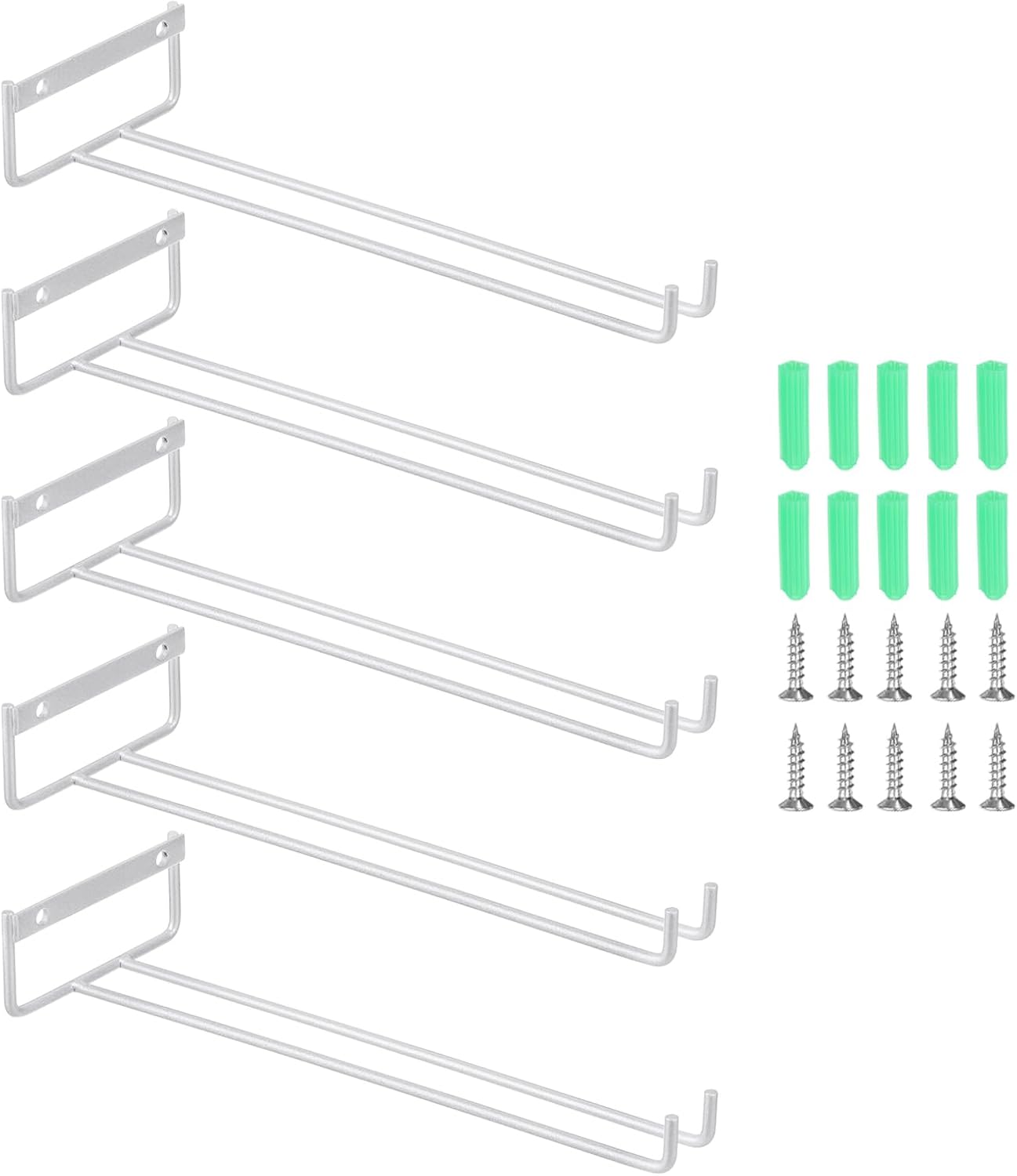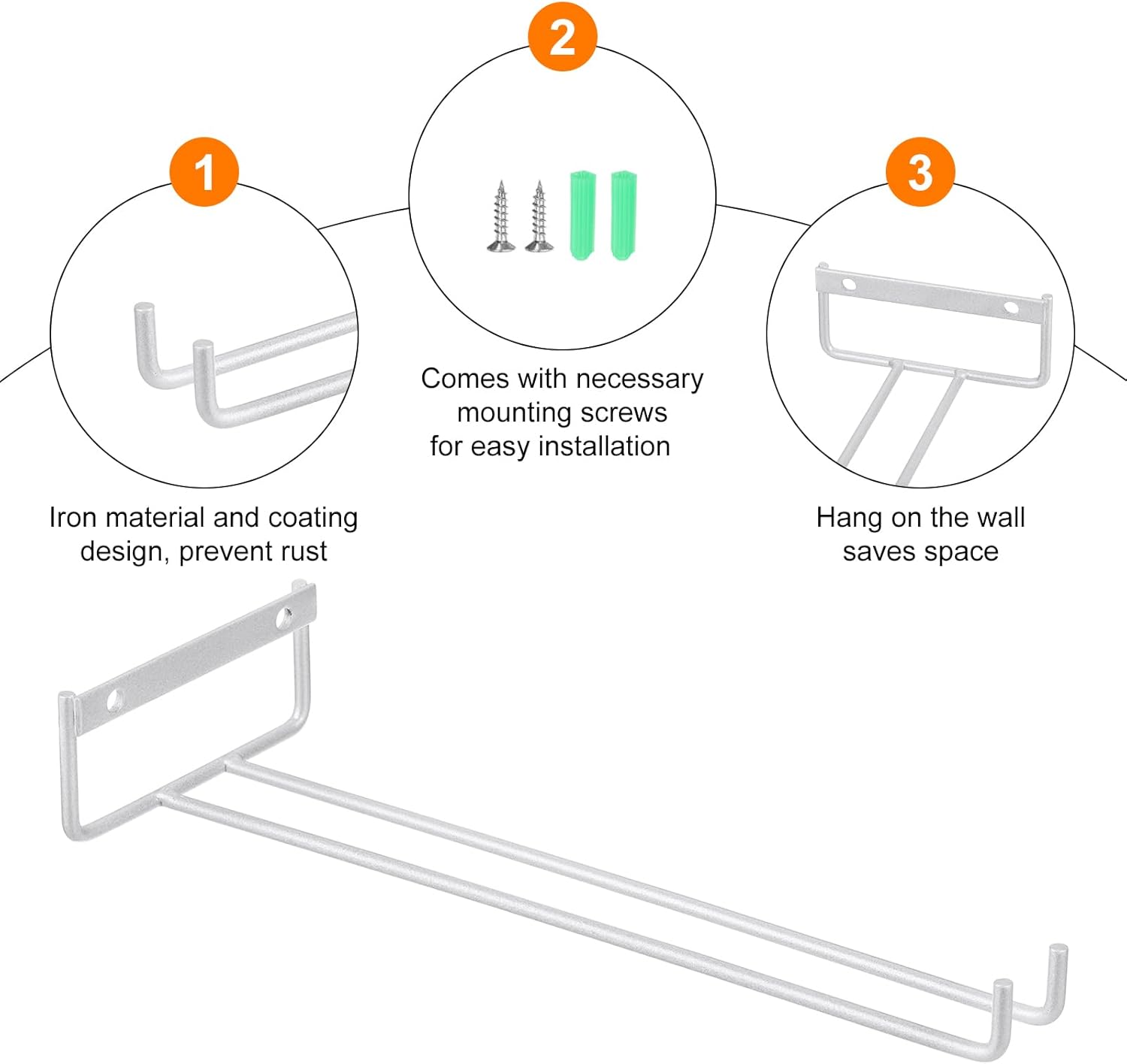 uxcell 5Pcs Wine Glass Rack, 11.22 Inch Iron Wine Glasses Rack Under Cabinet Stemware Rack - Wall Mountable Wine Glass Holder Storage Hanger for Bars Coffee Restaurants Kitchens, Silver