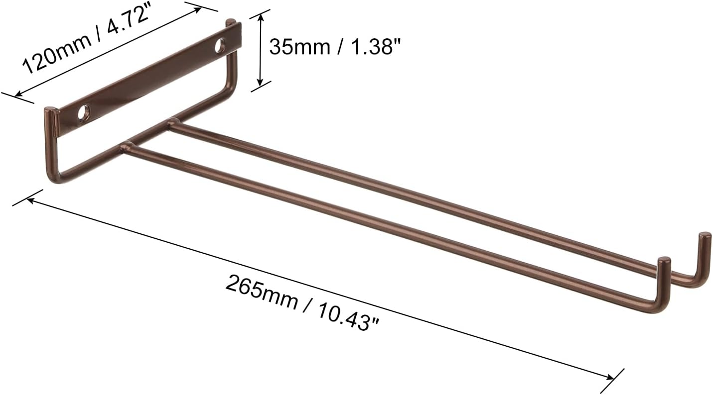 uxcell 5Pcs Wine Glass Rack, 10.43 Inch Iron Wine Glasses Rack Under Cabinet Stemware Rack - Wall Mountable Wine Glass Holder Storage Hanger for Bars Coffee Restaurants Kitchens, Bronze