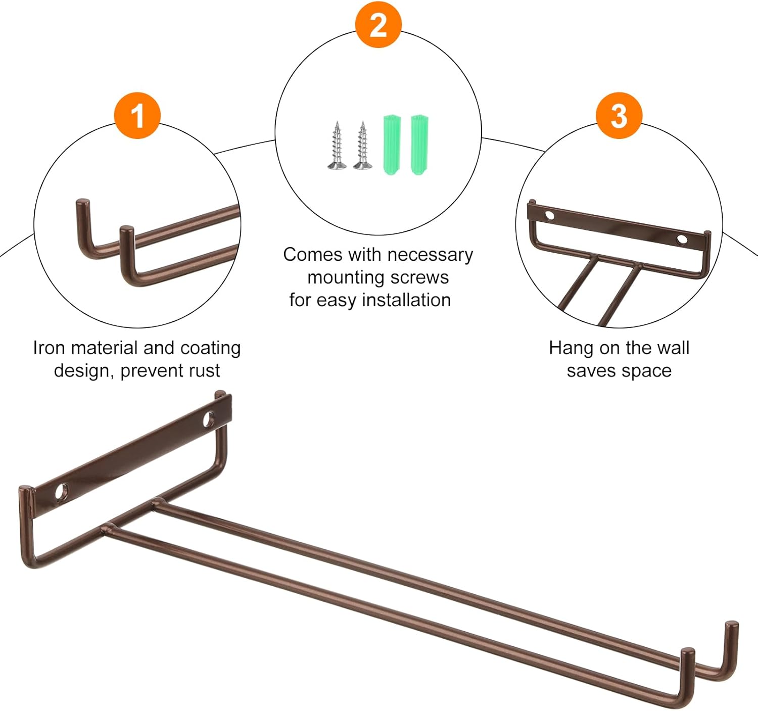 • [Easy to Install] Our wine glass rack comes with the necessary mounting screws for easy installation. You can only need to use a screwdriver to screw the provided screws into the wood of the cabinet. They fit perfectly under cabinets in a few minutes.