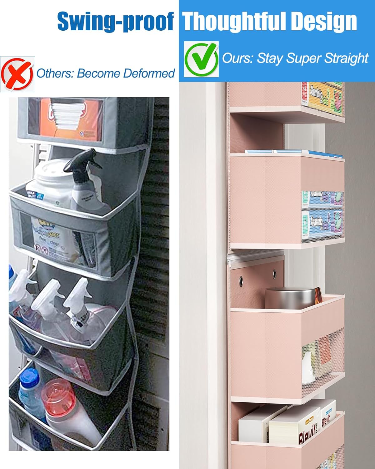Closet Organizers and Storage, Over The Door Organizer, 6 Shelf Camper Storage, Behind The Door Storage Organizer, Wall Mount Back of Door Hanging Organizers (Pink)
