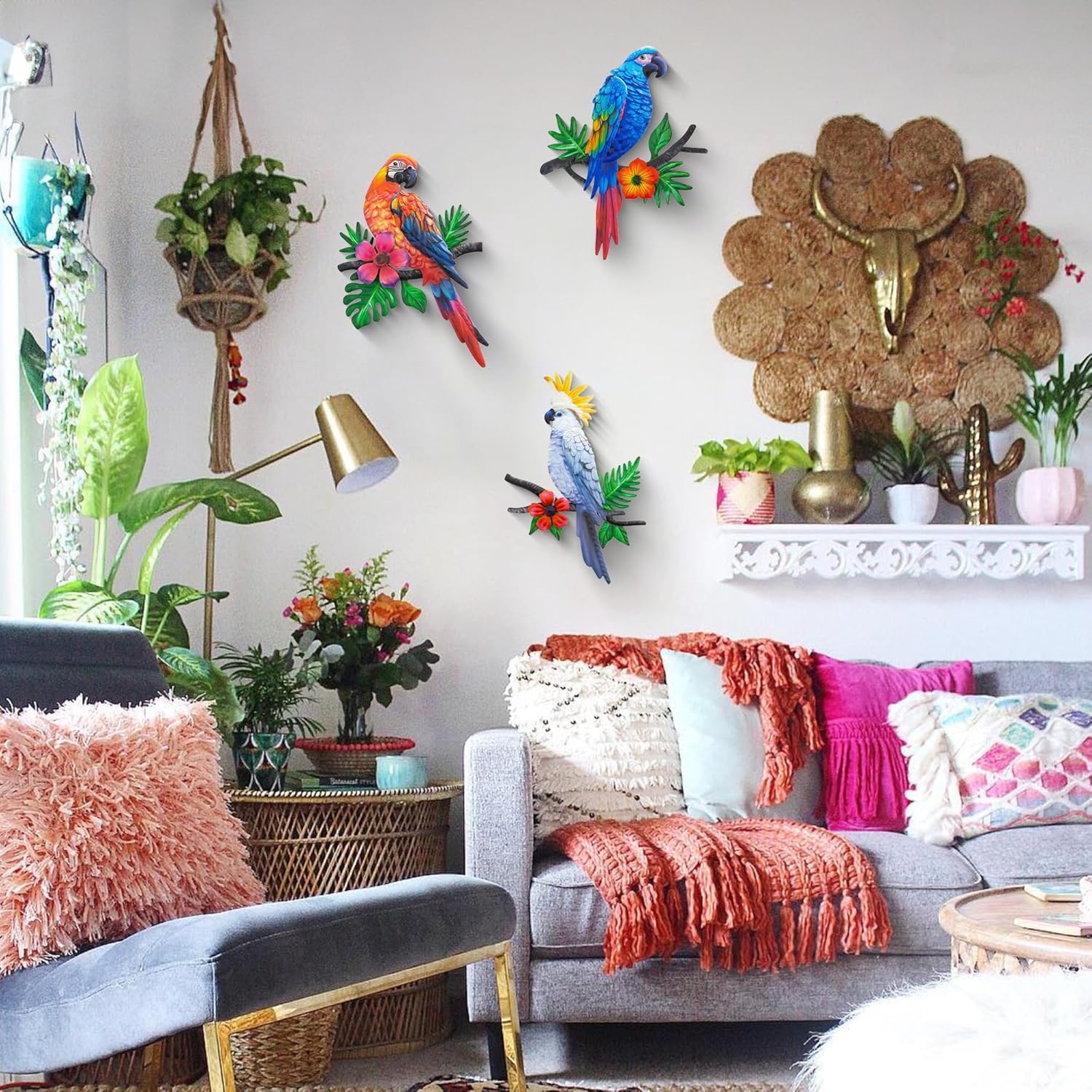 Metal Parrots Wall Art Decor Outdoor Decorations for Yard, Outdoor Garden Decor, Patio Decorations Garden Metal Bird Wall Decor-12 Inches Parrot Large Hanging Wall Decor 3 Pack