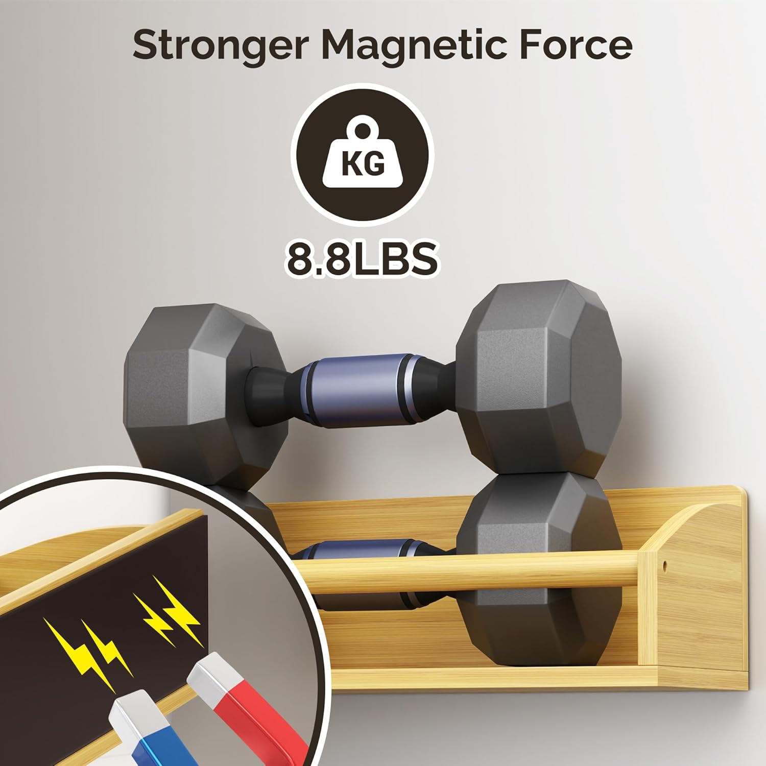 2 Pack Magnetic Spick Rack for Refrigerator, Fridge Organizer Shelf, Bamboo Wood