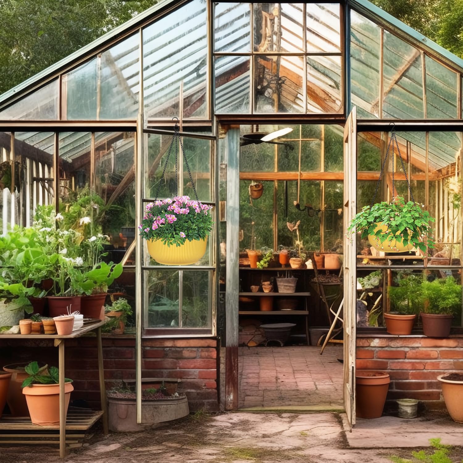 • Indoor/Outdoor Planter: The hanging plant pots with removable detachable hanging chain, either be hanging indoor like living room, dining room, bedroom, kitchen, hallway, windowsill, or outdoor like in patio, garden, deck, balcony. Flat bottom make it can sit without chains on desktop