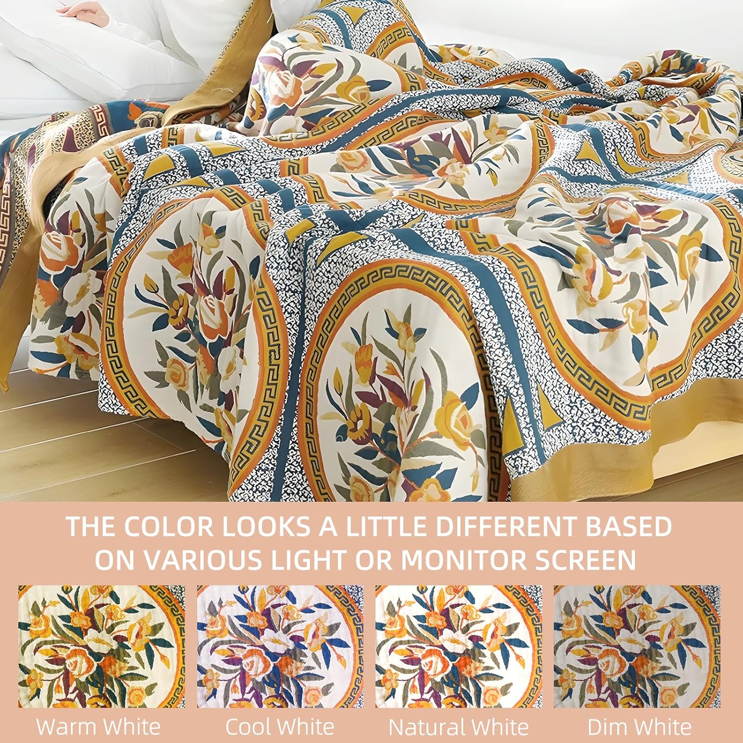 Boho Throw Blanket for Bed - 100% Pure Cotton Ultra Soft Rustic Quilt - Farmhouse Decor Bed Blankets, All Season Rustic Throw for Sofa Couch Chair(91''x 98'', Floral)