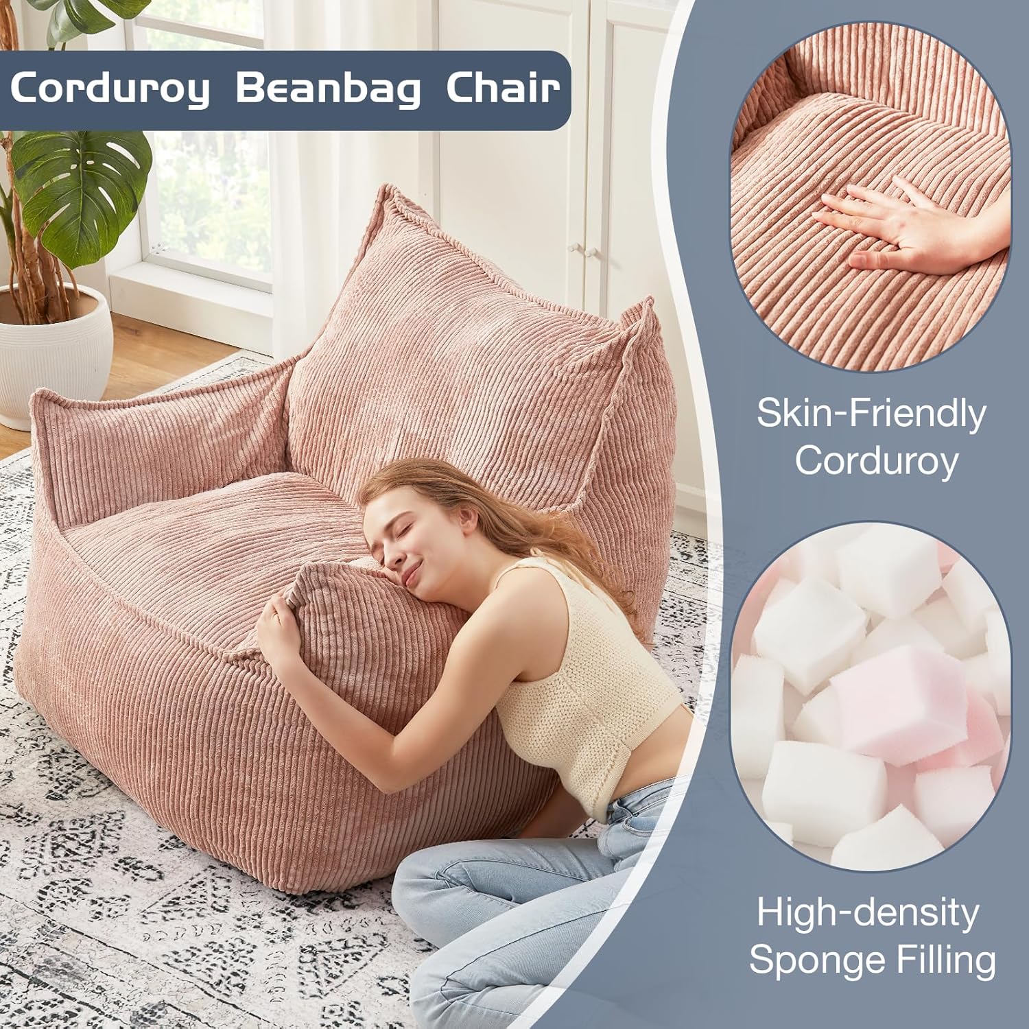 • 【MULTIPLE USAGE】: Corduroy bean bag sofa chair will blend into any home decor styles, and suitable for various rooms, perfect for bedroom, living room, game room, study room, office or apartment. Providing comfort and support while reading, playing, gaming, sleeping, watching TV, etc.