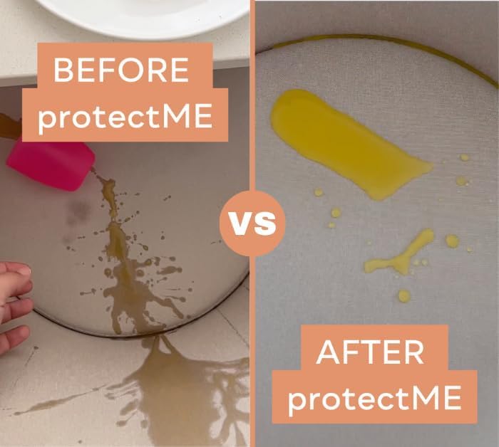 • SAFE, ODORLESS AND NON TOXIC FABRIC PROTECTOR : protectME is a non-flammable, odorless upholstery fabric protector spray that will not alter the natural look, feel, or scent of the material. It features a water-based amorphous silicon dioxide formula, contains no forever chemicals, won’t release fumes and is safe to use around your family and pets.