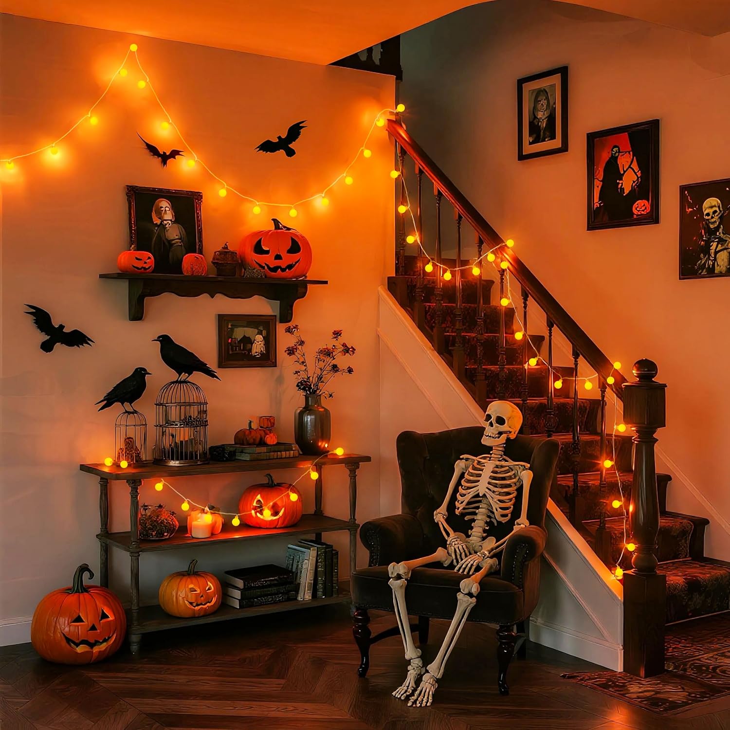 • 【Lovely Orange Halloween Lights】: The orange string lights come with frosted globes can create a soft, cosy light to take care of your eyes. The lighting effect is irreplaceable by other LED string lights. Lovely orange string lights are waiting for you to show up and take it home. It’s a stunning Halloween decoration