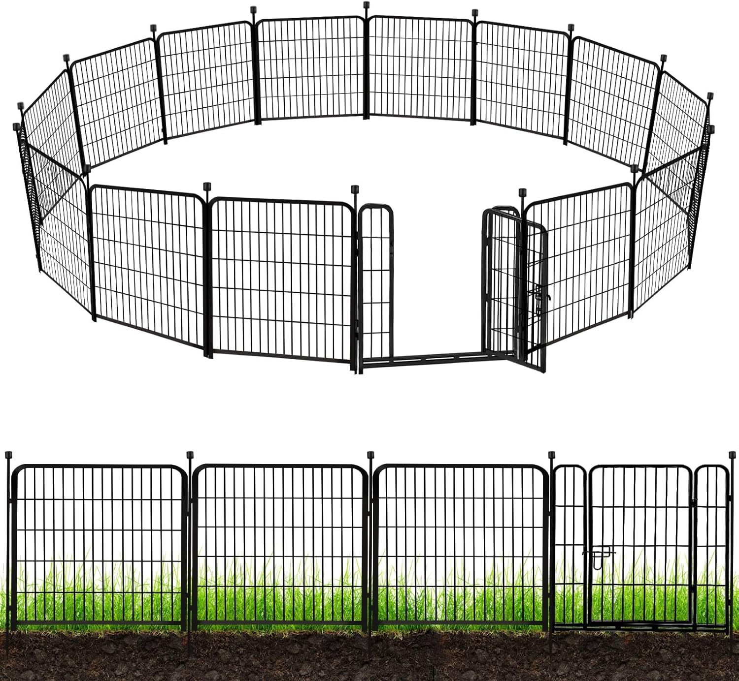 • Garden Fence for Dogs: Adavin Garden Fence with Gate Consists of 13 Panels 40 Inches High X 27 Inches Wide and 1 Gate, Total Length of 31 Feet. This Black Metal Decorative Garden Fencing is Welded with Thick Heavy Metal Material, Coated with Rust-Proof Coating, and The Spacing of The Barbed Wire is Small