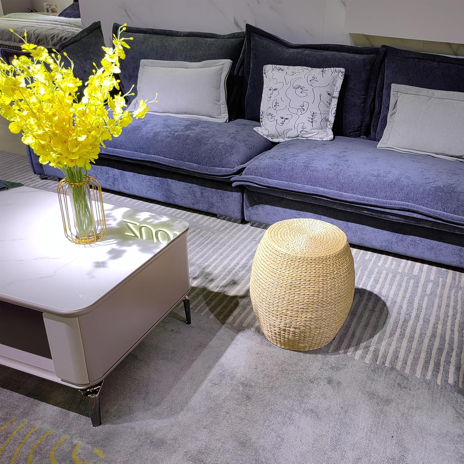 • Measuring approximately 16.14 inches (40cm) in height and 11.8 inches (30 cm) in diameter, this pouf is the perfect size for tucking into cozy corners or arranging in groups for a casual lounge area. Whether you place it in your living room, bedroom, porch, or even a sunroom, this natural rattan ottoman will infuse your space with warmth and texture.