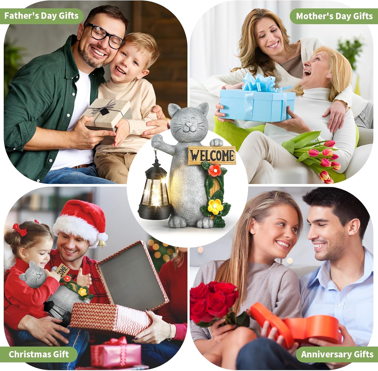 • A Great Gift: Cats are popular pets. Our cute solar cat statue is a great gift for any occasion, such as Christmas, New Year's, birthdays, Mother's Day, Father's Day, Valentine's Day, housewarming, graduation, Easter, etc. It can be given to him, her, women, men, dad, mom, wife, husband, sisters, brother, grandfather, grandmother, colleagues, kids, neighbors, or friends, etc.