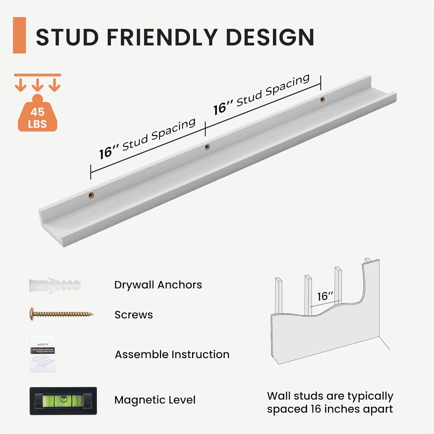 • Dual Picture Frame Shelves: Customize Your Space with Our Dual long picture ledge shelf. This set includes two versatile picture ledge shelf, perfect for personalizing your home. Whether you're creating a family photo gallery in the hallway or showcasing your collectibles, these ledge shelves provide the ideal solution. Ensuring strength and reliability for all your display needs