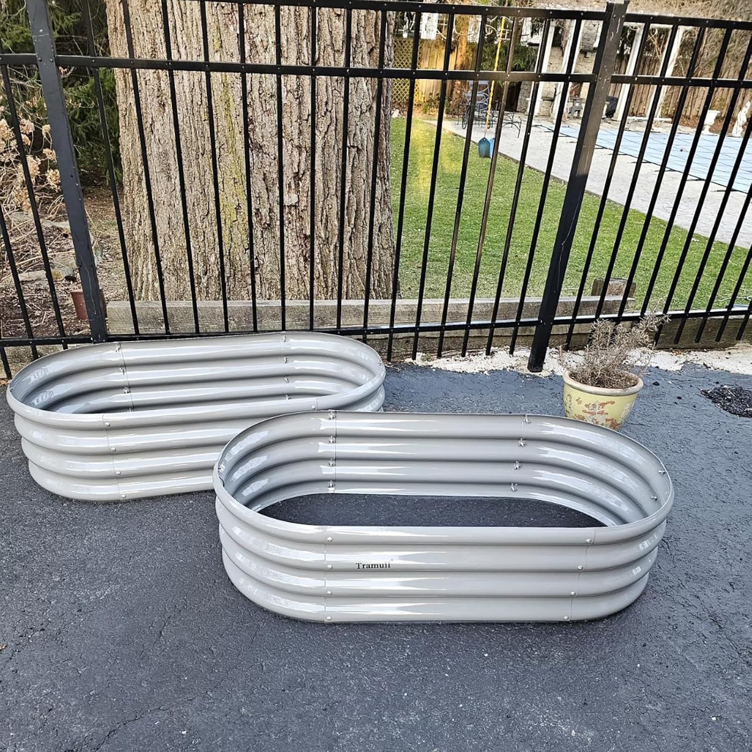 • 【Safety Features】①Anti-rust Coating, do not contaminate soil, safe for plants and humans; ②Oval shape, the raised planter box has rounded corner; ③Thickened crimped edge design, no sharp edges, smooth to the touch; ④ Gloves included; will not hurt your hand when installing or planting