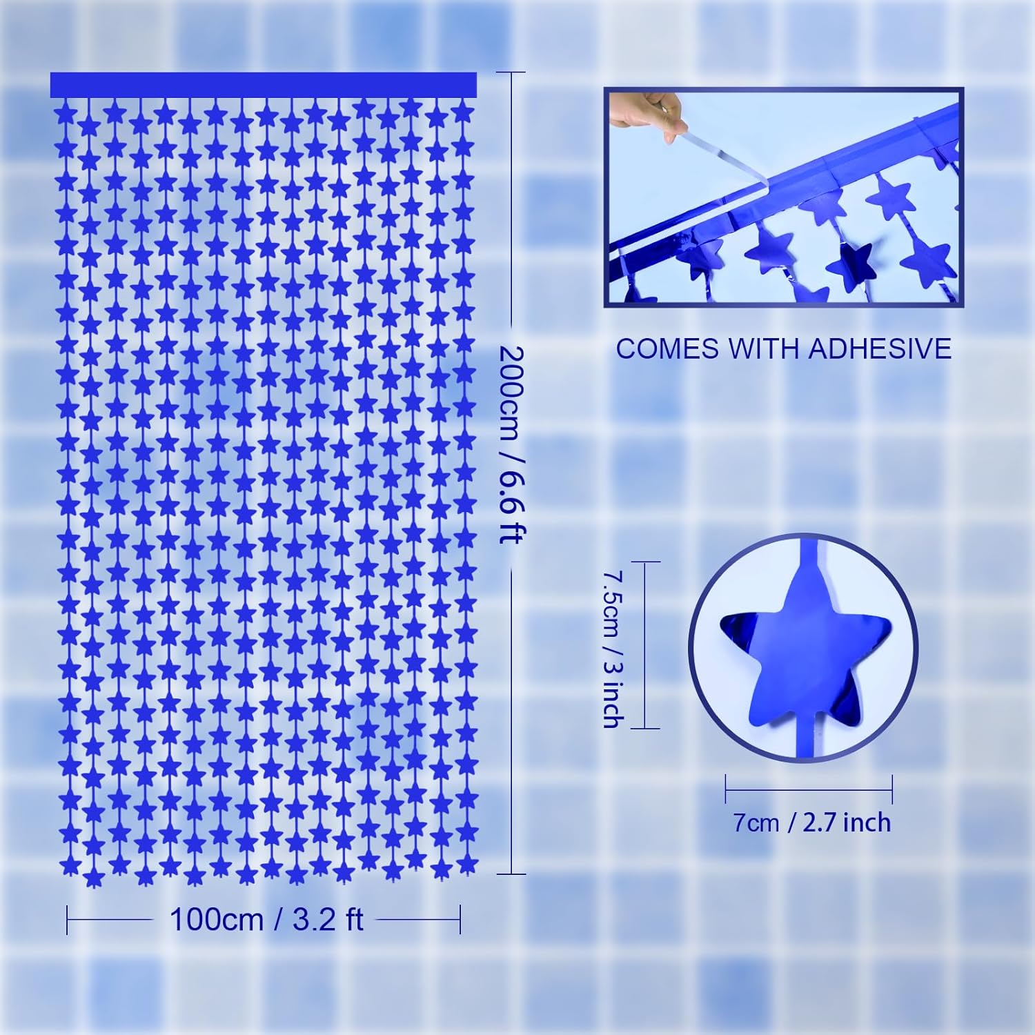 • ๐Ÿ’™ใ€ Blue Party Beats! ใ€‘: Our 2 pack navy blue stars foil fringe curtains, Large size (width x drop) 3.3 x 6.6 ft each, perfect photo backdrop for various parties.