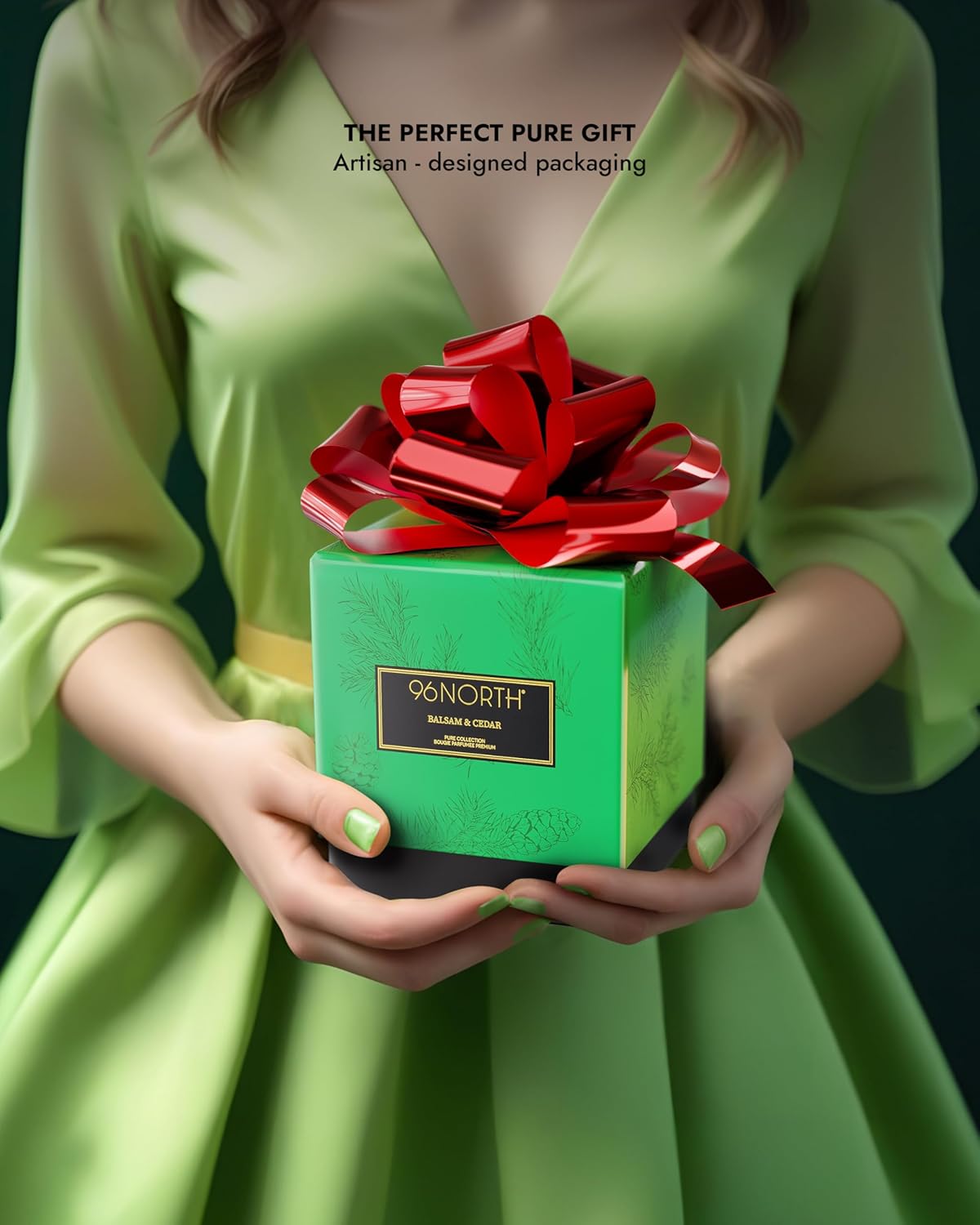 96NORTH Pure Candle Balsam & Cedar Scented | 100% Natural Soy Wax | 1-Wick Jar Candle | Natural Fragrance Technology | Non Toxic | Up to 35 Hours Burning Time | Ideal Christmas Candles Gift