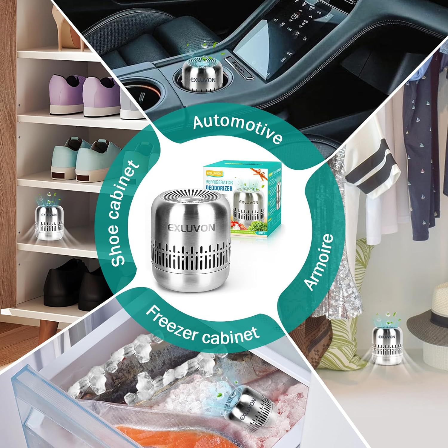 • Eco-Friendly Odor Eliminator: The Exluvon refrigerator odor eliminator is made from food grade SUS 304 stainless steel, ensuring durability and high quality. The innovative design of this fridge deodorizer enhances air circulation, stopping odor build-up and keeping your food safe and fresh. You won't have to worry about spills or leaks anymore!