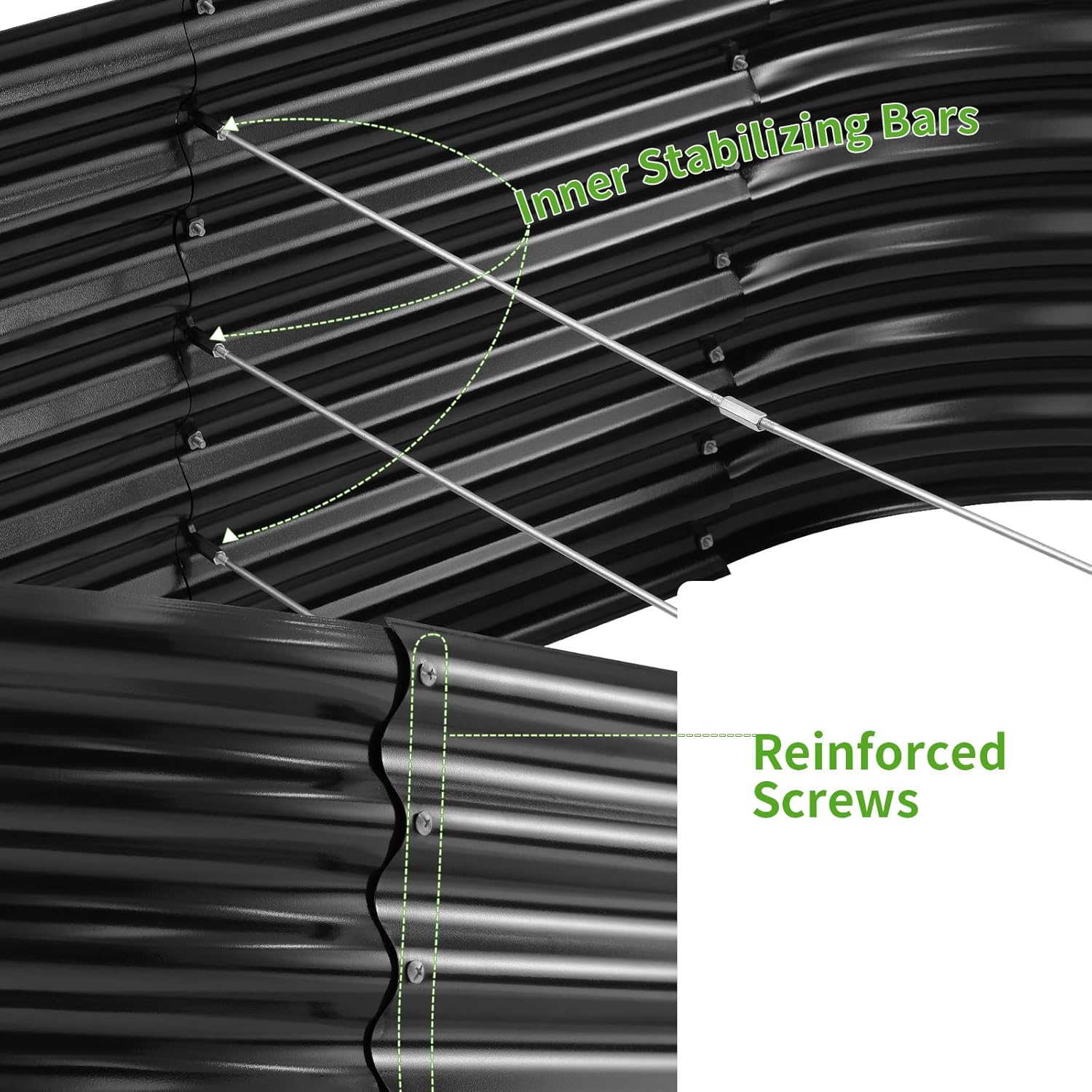 • Durable material: Outdoor planter box is made of stable thickened galvanized metal, corner and frame are reinforced, strong resistance to high temperature and corrosion, can be uesd for a long time.