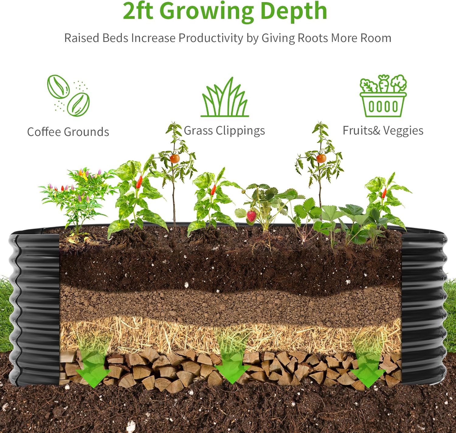 • Open bottom: Sits on the ground raised beds, provides good drainage, allow the roots get the nutrients to keep moist, make the plants grow better.
