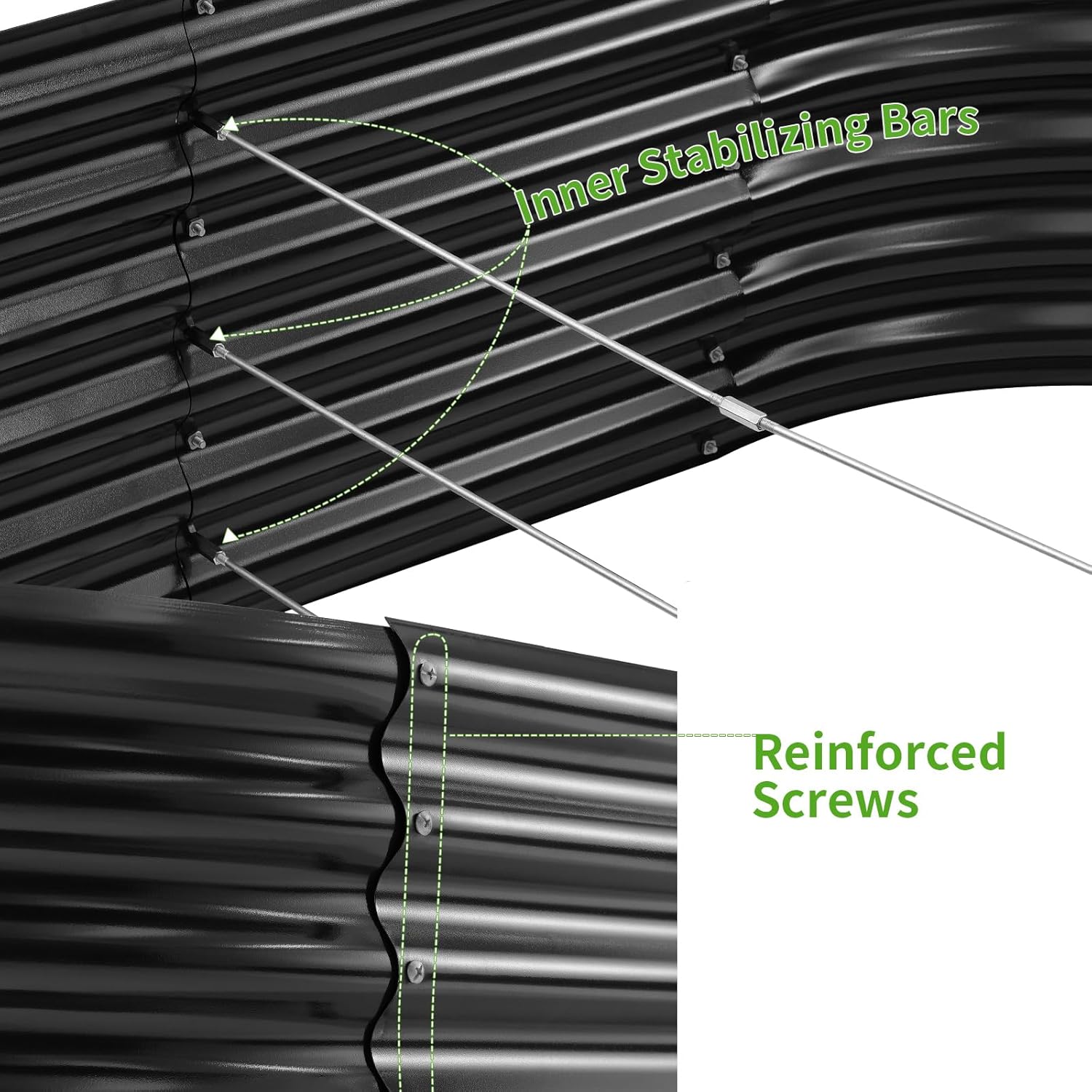 • Durable materials: The flower bed adopts oval design and is made of galvanized metal, the product surface is coated with environmentally friendly coating, which has good rust and corrosion resistance and can be used for a long time.