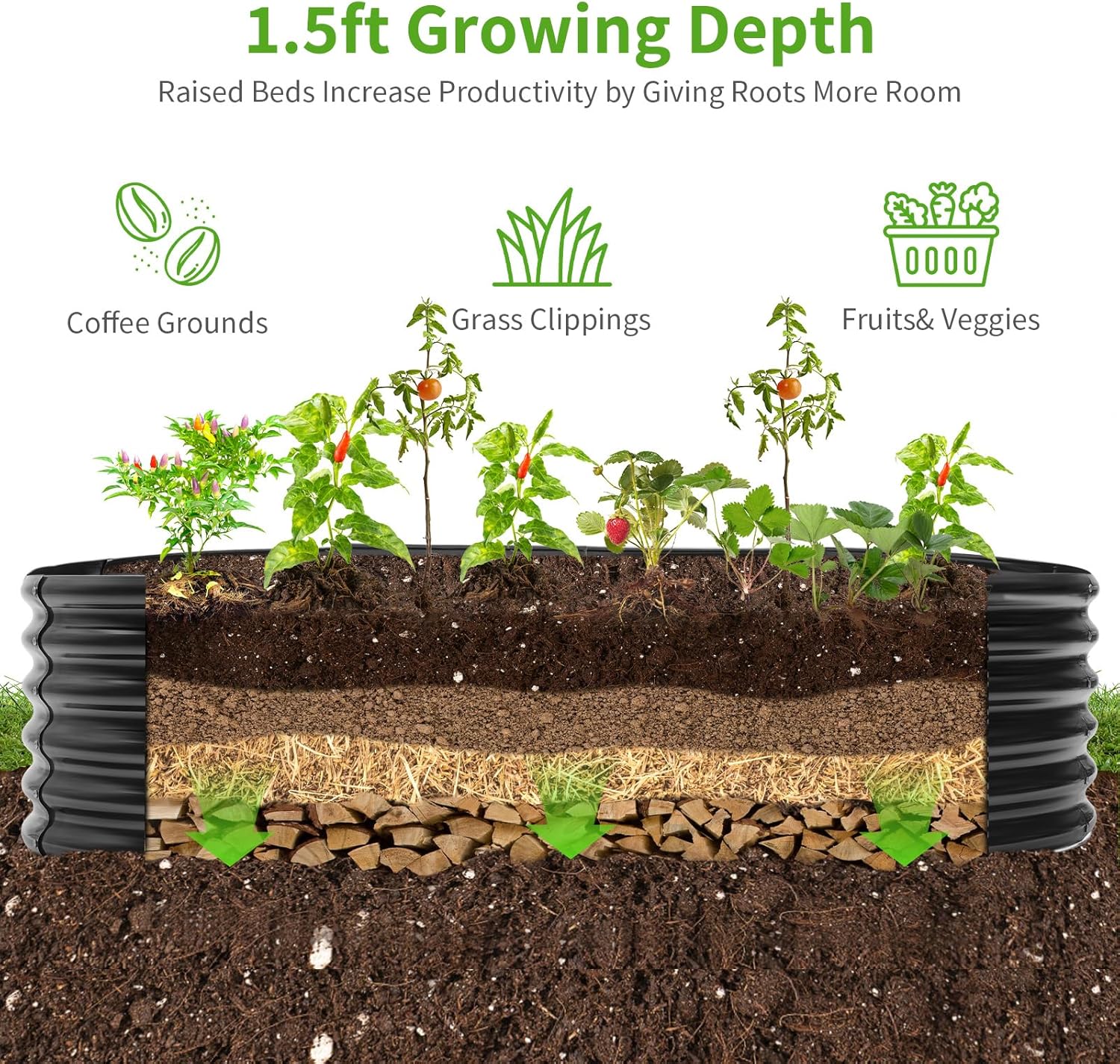 • Extra large capacity: The total dimensions of the raised garden bed are 96 "L x 48 "W x 18 "H and holds 359 gallons of soil. The extra large capacity provides plenty of growing space for planting vegetables, fruits, flowers and other plants.