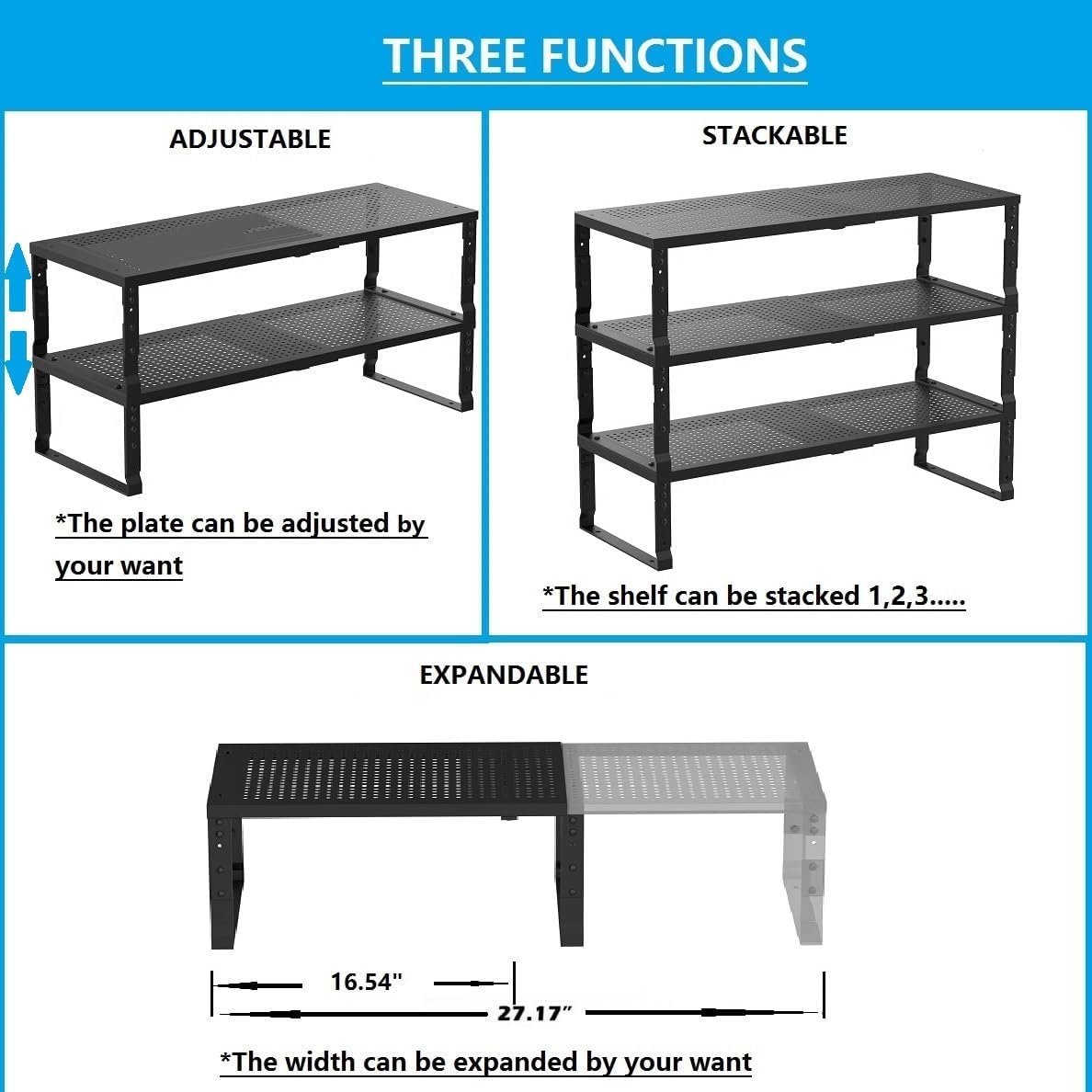 • ⭐【Flexible retractable design (Expandable & Adjustable)】This kitchen shelf uses a retractable design, which can be freely adjusted according to the size of the kitchen space and personal needs. Whether it is a narrow corner or a spacious storage room, it can be easily adapted to make the most of every inch of space.(10.1"D x 16.54"W~26.38"W x 6.22"H)