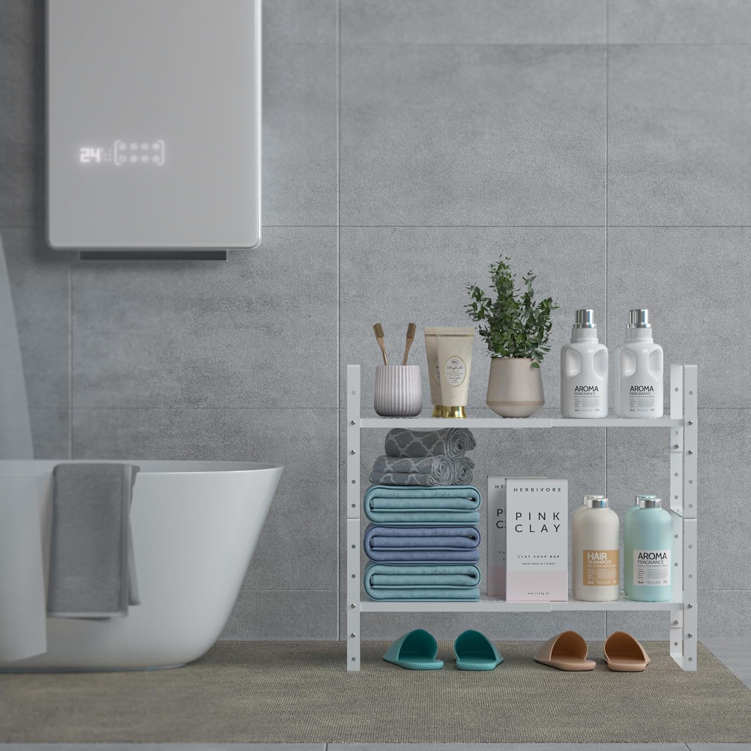 Expandable,Adjustable & Stackable Spice Rack, Cabinet Kitchen Countertop Shelf Organizer,Metal Pantry Storage Shelves - Space-Saving Storage Solution(1Pack/White/Medium)