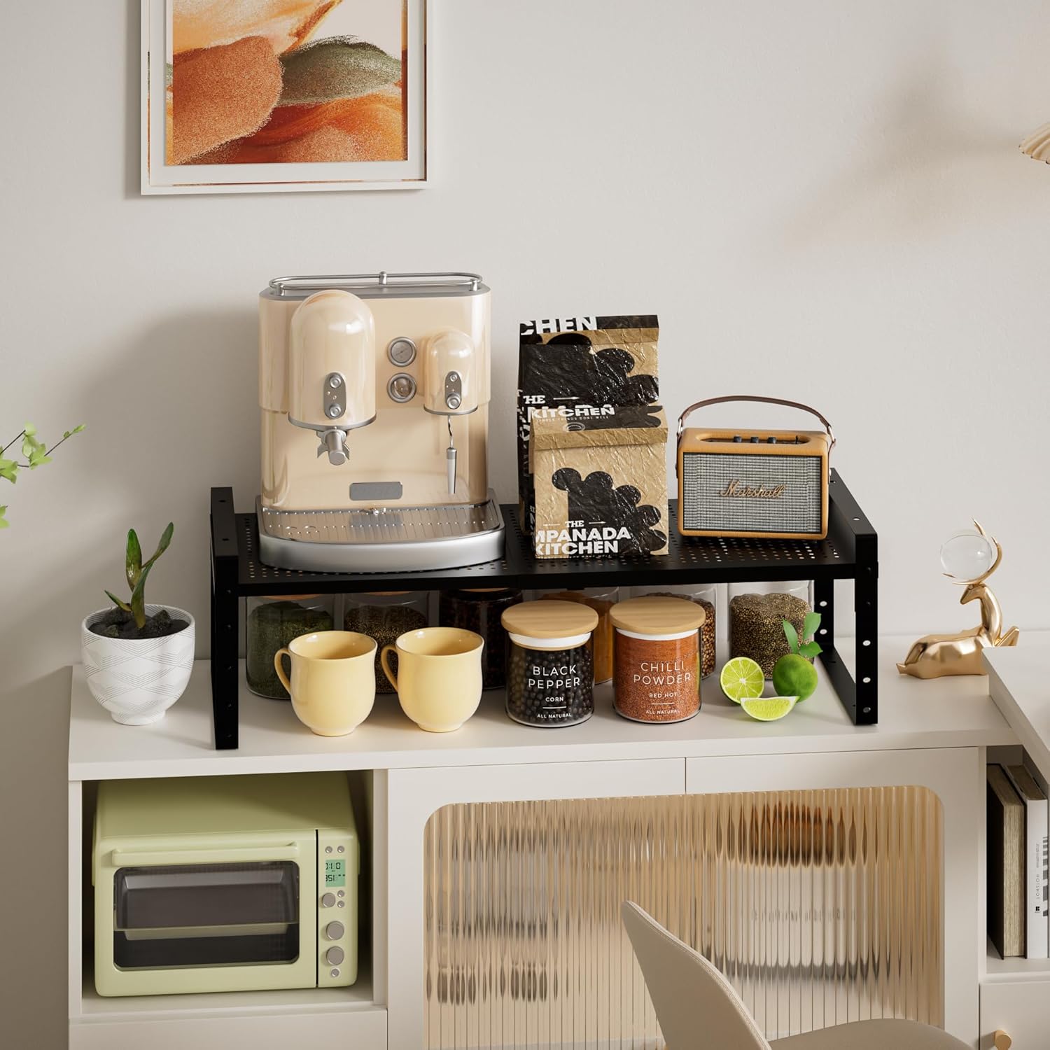 Expandable,Adjustable & Stackable Spice Rack, Cabinet Kitchen Countertop Shelf Organizer,Metal Pantry Storage Shelves - Space-Saving Storage Solution(1Pack/Black/Medium)