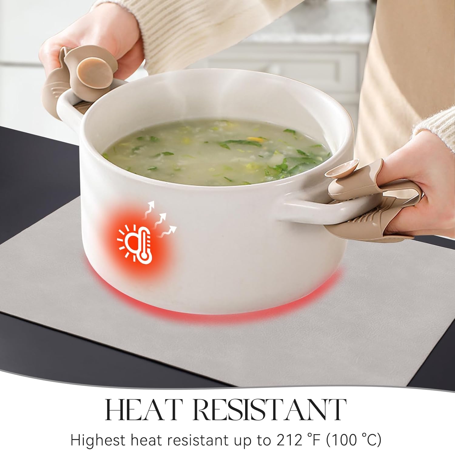 • PROTECT YOUR TABLE: Our placemats are 2mm thick and heat-resistant up to 212℉/100℃, which can protect your table from high temperatures and reduces noise from plates and flatware. It is an excellent choice to protect protect the surface of your dining table from hot dishes and liquid spills.