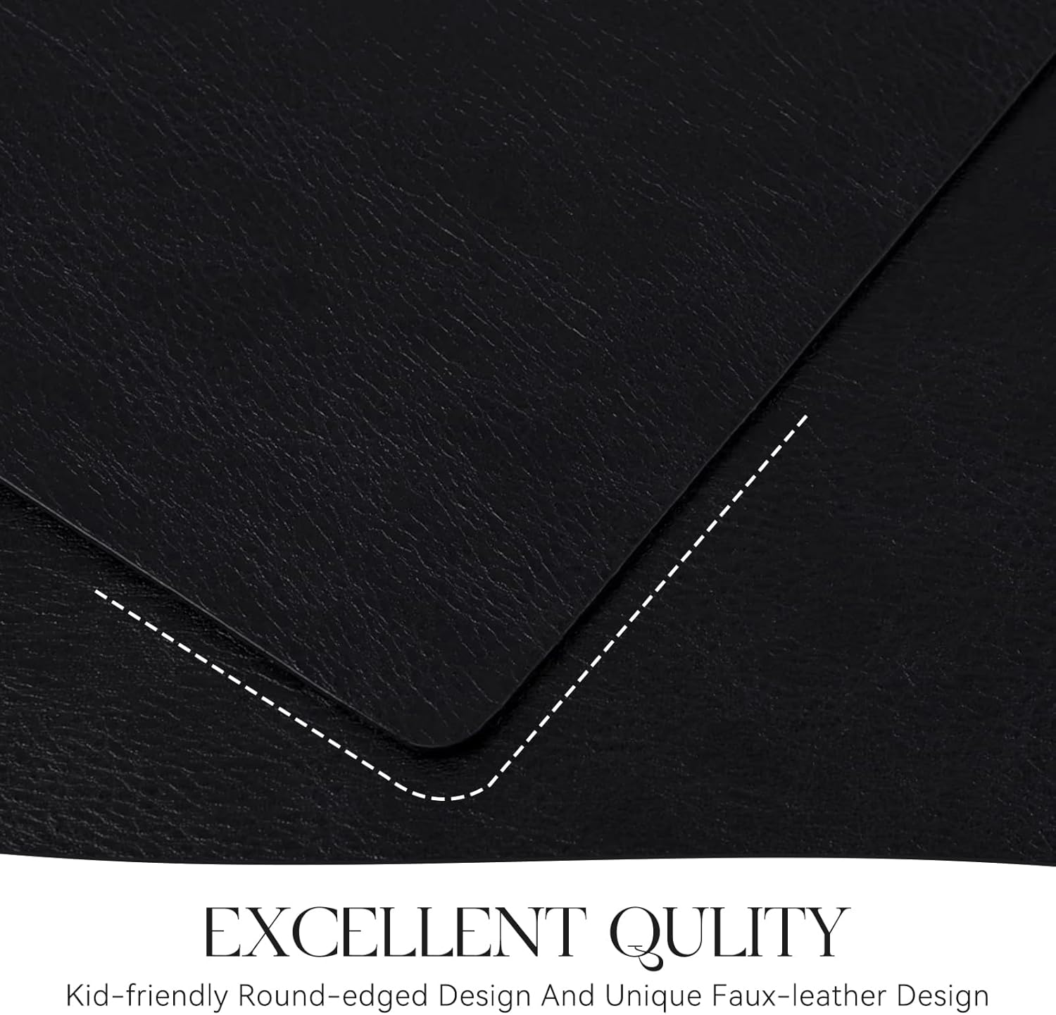• PREMIUM QUALITY AND DURABLE: MOSAYT leather placemats are made of high quality faux leather, designed for long term use. Fine workmanship ensures superior quality and long-lasting durability of the placemats, easily protecting your table from scratches and stains.