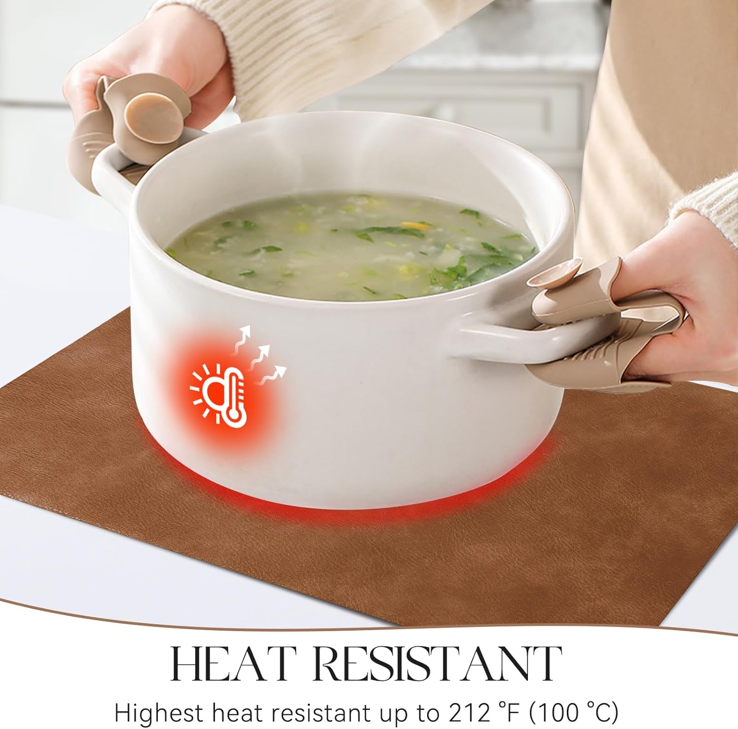 • HASSLE-FREE CLEANING: Our faux leather placemats are designed to be 100% waterproof to better protect the table from grease and grime compared to woven and fabric placemats. If the placemats get stained with sauce or food residue, simply wipe with a cloth or rinse with water.