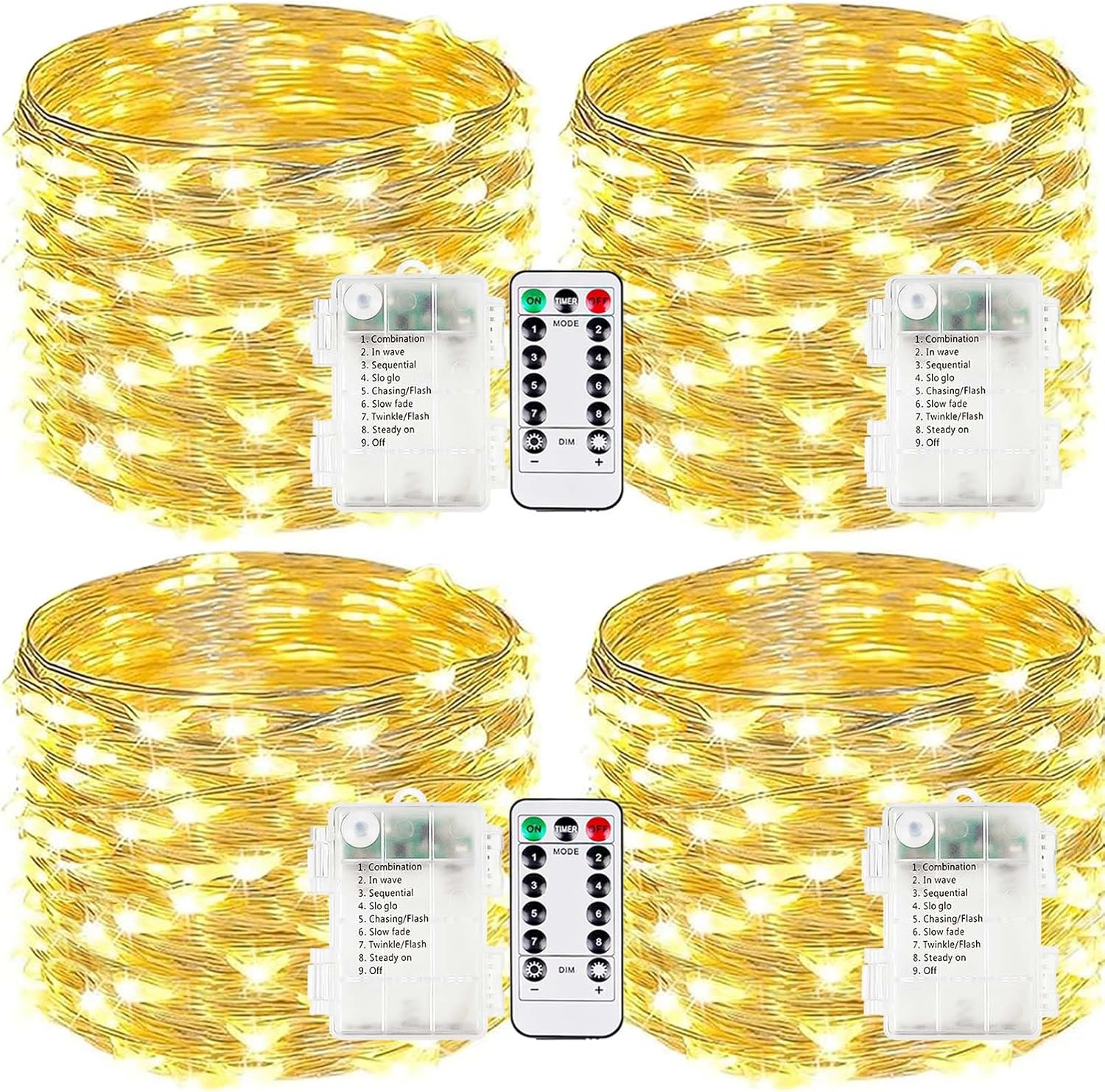 • Upgraded Christmas twinkle lights: Designed with ultra-bright LEDs and durable silver wire, these battery fairy lights are built to last and make an excellent choice for decorating bedrooms, centerpieces, balconies, and porches. Each set includes 4 strands of lights and 2 remotes, each 33ft long with 100 LEDs, powered by 3 AA batteries (not included)