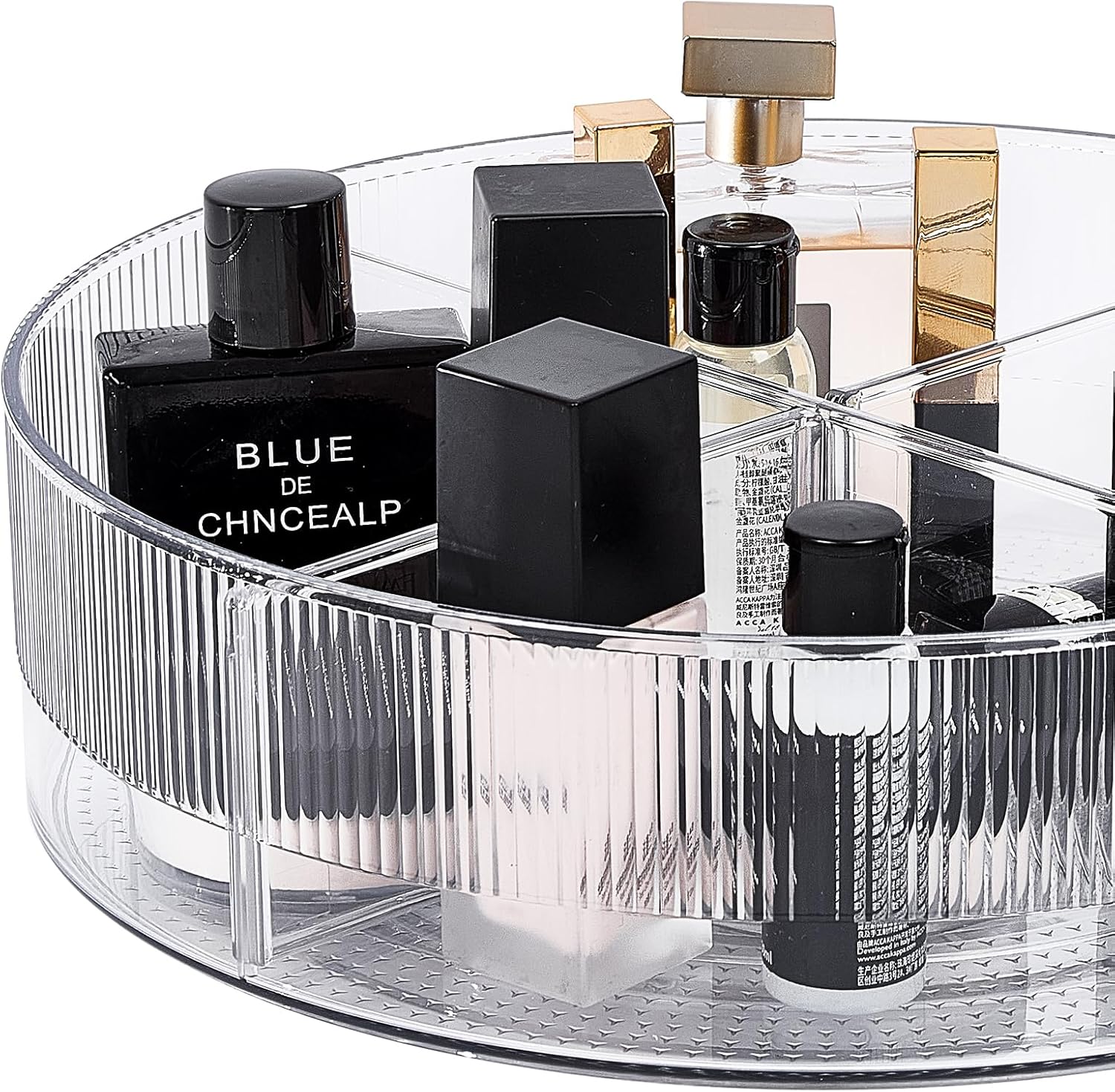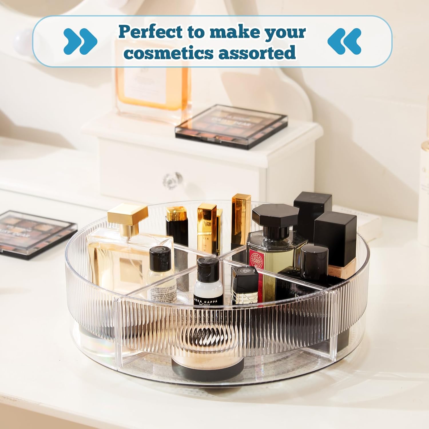 • MULTIPURPOSE ORGANIZER: This versatile Lazy Susan turntable is perfect for a variety of uses. Organize your spices, seasonings, snacks or even display items on a shelf. It also serves as a stylish cosmetics, perfumes holder or a bathroom organizer, keeping your desktop neat and tidy. The upgraded divider design makes it easier for you to separate and organize different items.