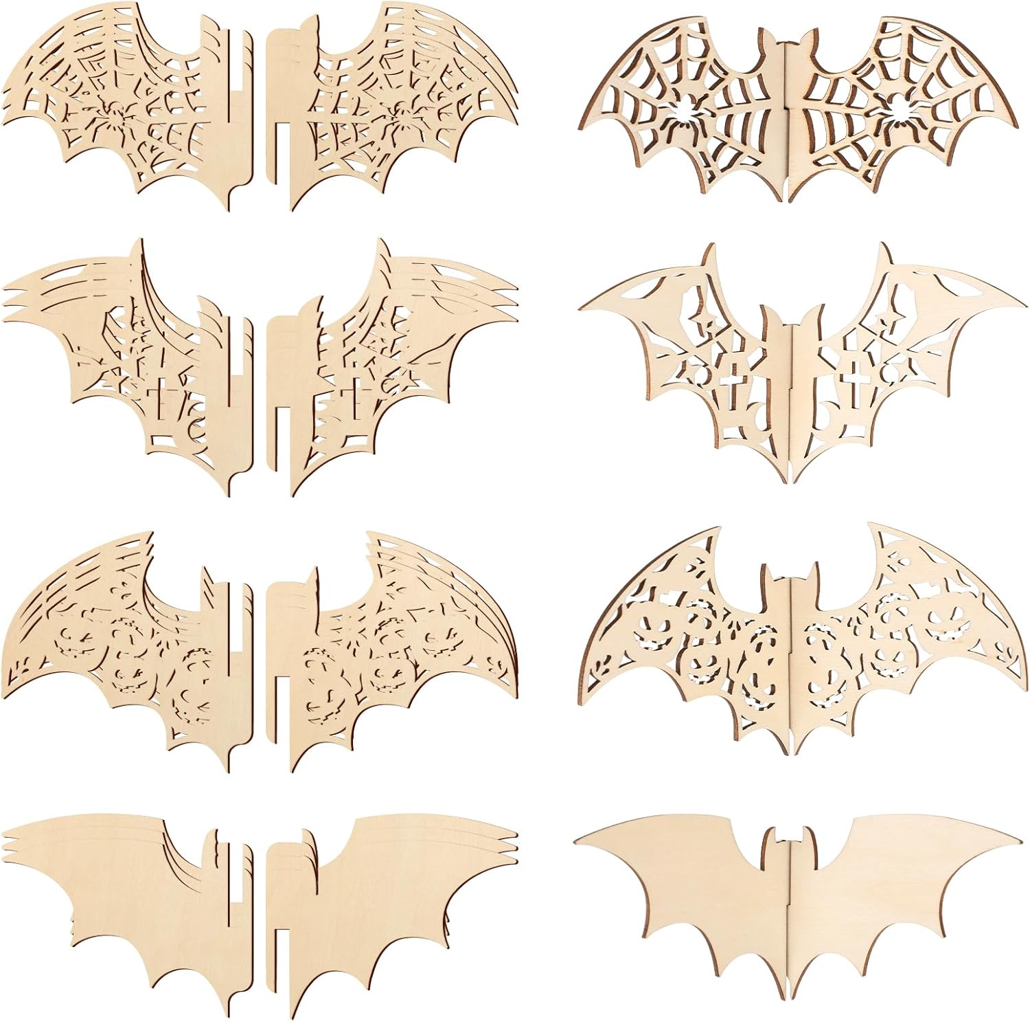 • Unique 3D Bats Shape Wood Crafts To Paint - These unfinished wood sheets are cut out to cute Halloween Bats patterns, in sufficient quantity, and suitable size for you to use on DIY craft projects, you can also share them with your kids and friends.