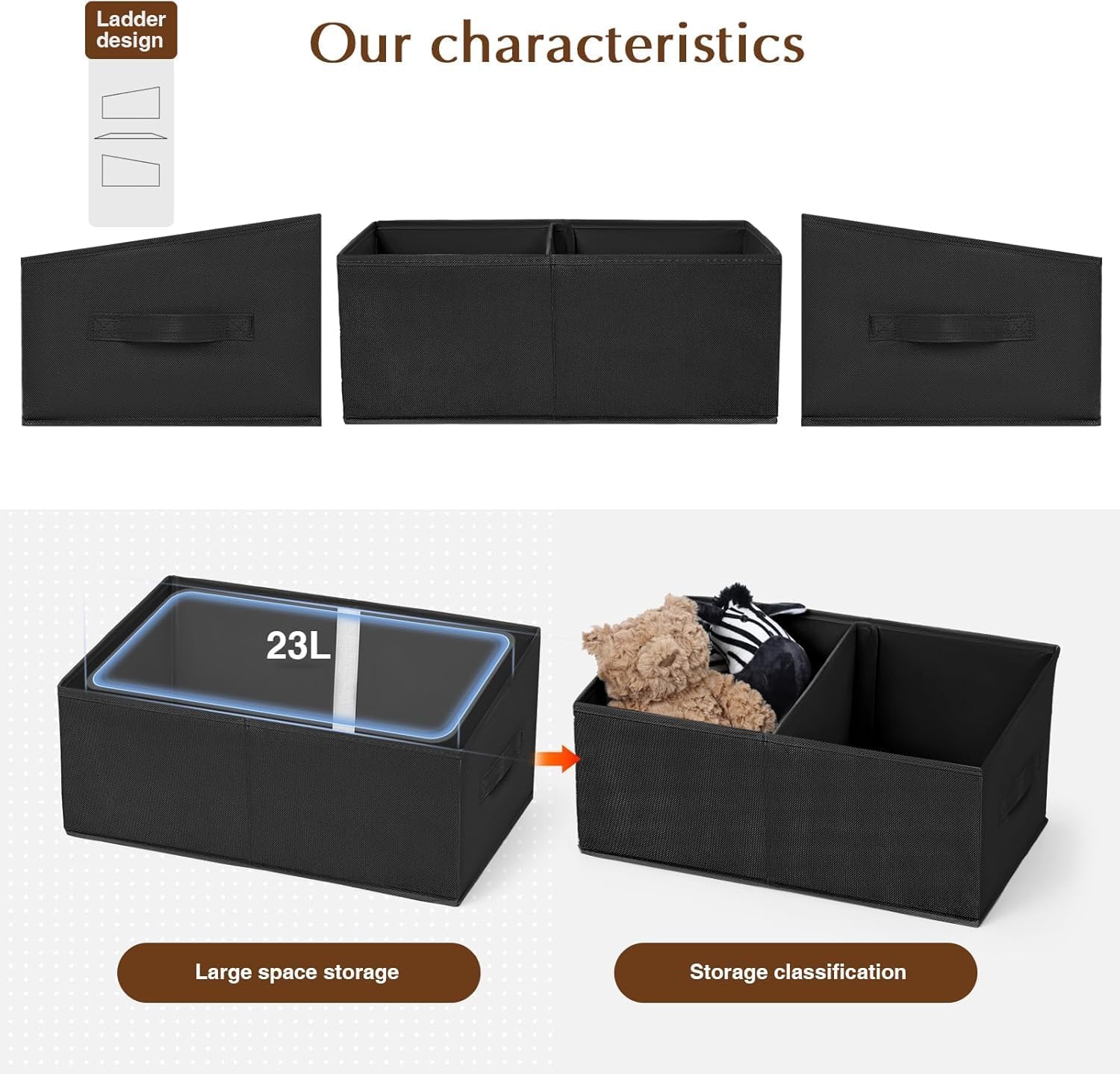 • 【Trapezoidal Design】These closet storage bins are Trapezoid design that makes finding things convenient, also allows easy access when putting on the highest shelf. These are ideal closet bins for clothes, bags, shoes, towels, blankets, toys, dolls, and more