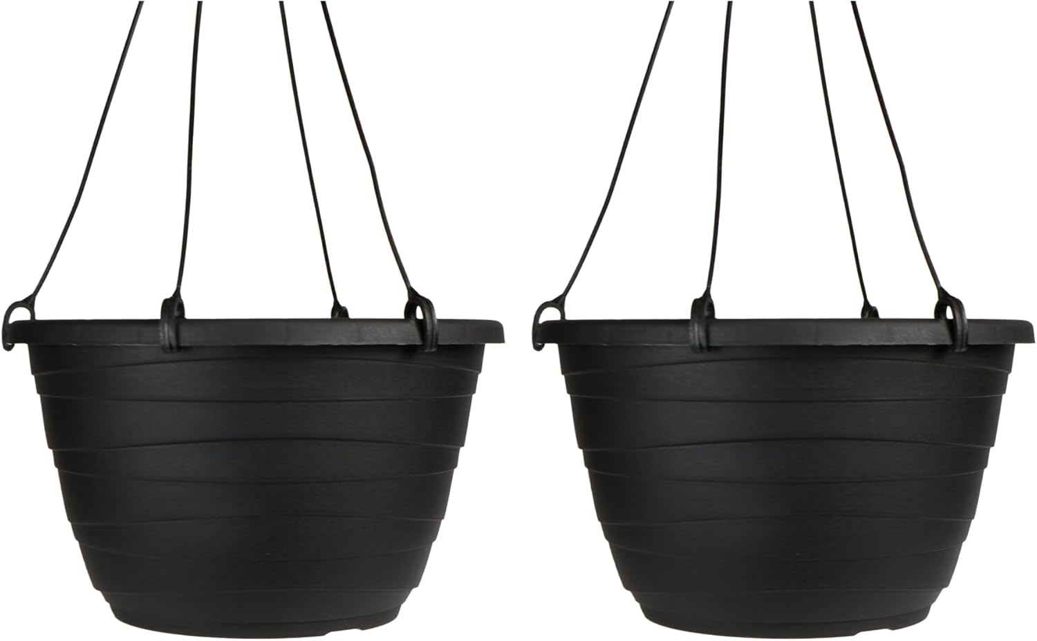 The HC Companies Wrapt Hanging Planters - Lightweight Plant Pot Hanger for Hanging Plants, Vegetables & Herbs - Outdoor & Indoor Hanging Basket for Plants (13" Black, Pack of 2)