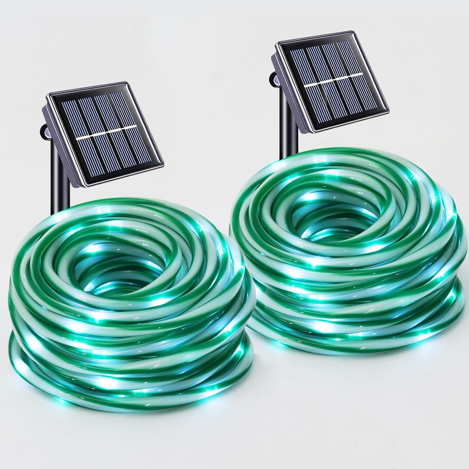 YEGUO Solar Christmas Candy Cane Rope Lights, 2 Pack Each 33ft 100 LED Green & White Solar Rope Light Outdoor Waterproof Decorations String Tube Lights
