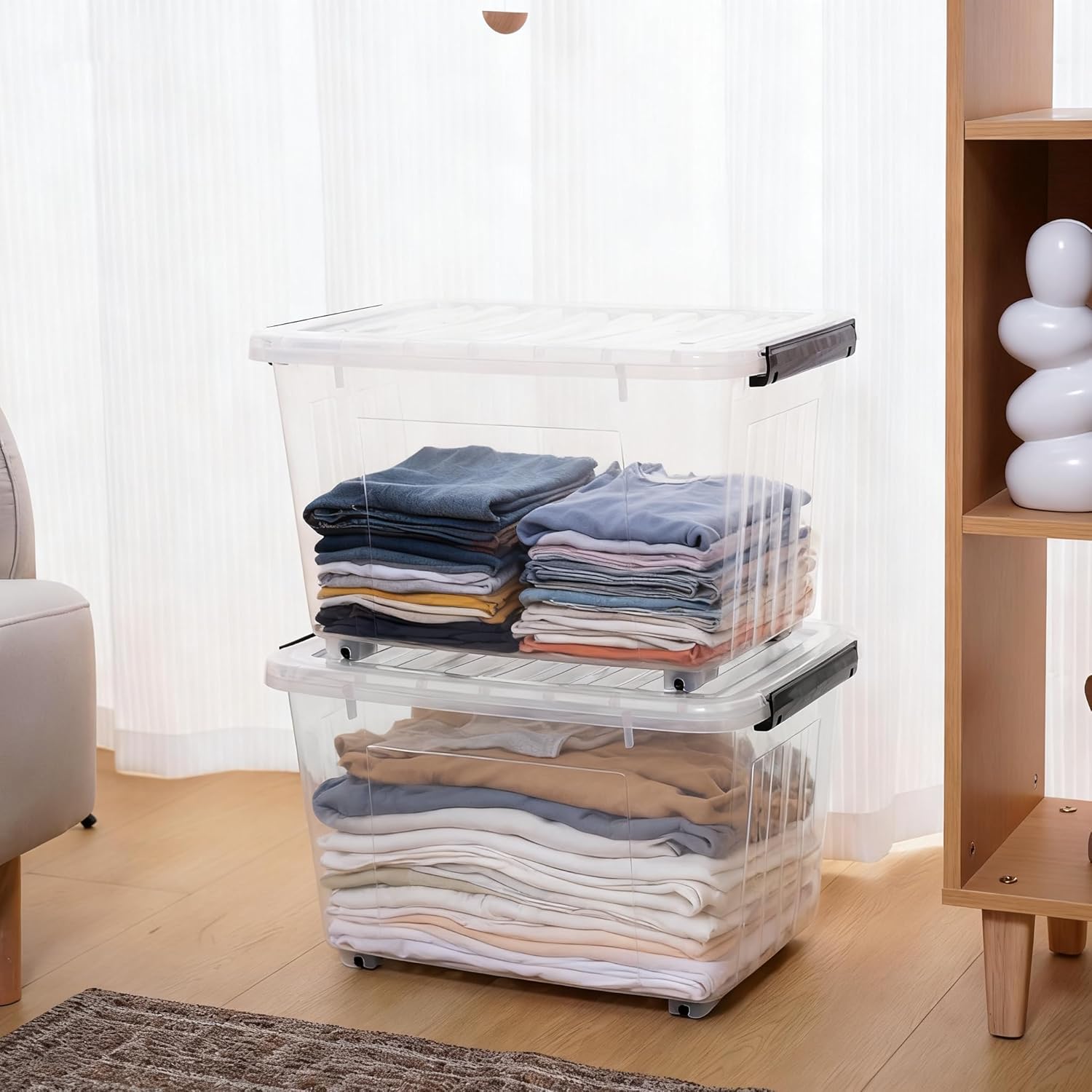 • 【Large Capacity】Package includes 4 x 54 quarts storage bins measuring 19.7 "L x 13.8 "W x 12 "H, perfect for large storage needs in closets, garages, bedrooms, basements, offices, and more.