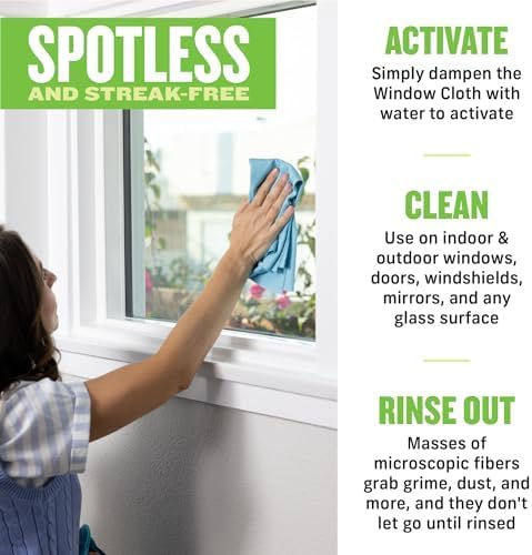 • TWO STEPS, TWO CLOTHS: Start by activating the waffle-weave Window Cloth with water and wiping your surface. Follow up with the smooth-weave, dry Glass & Polishing Cloth to remove streaks. Simple and convenient cleaning cloths for house tidying!