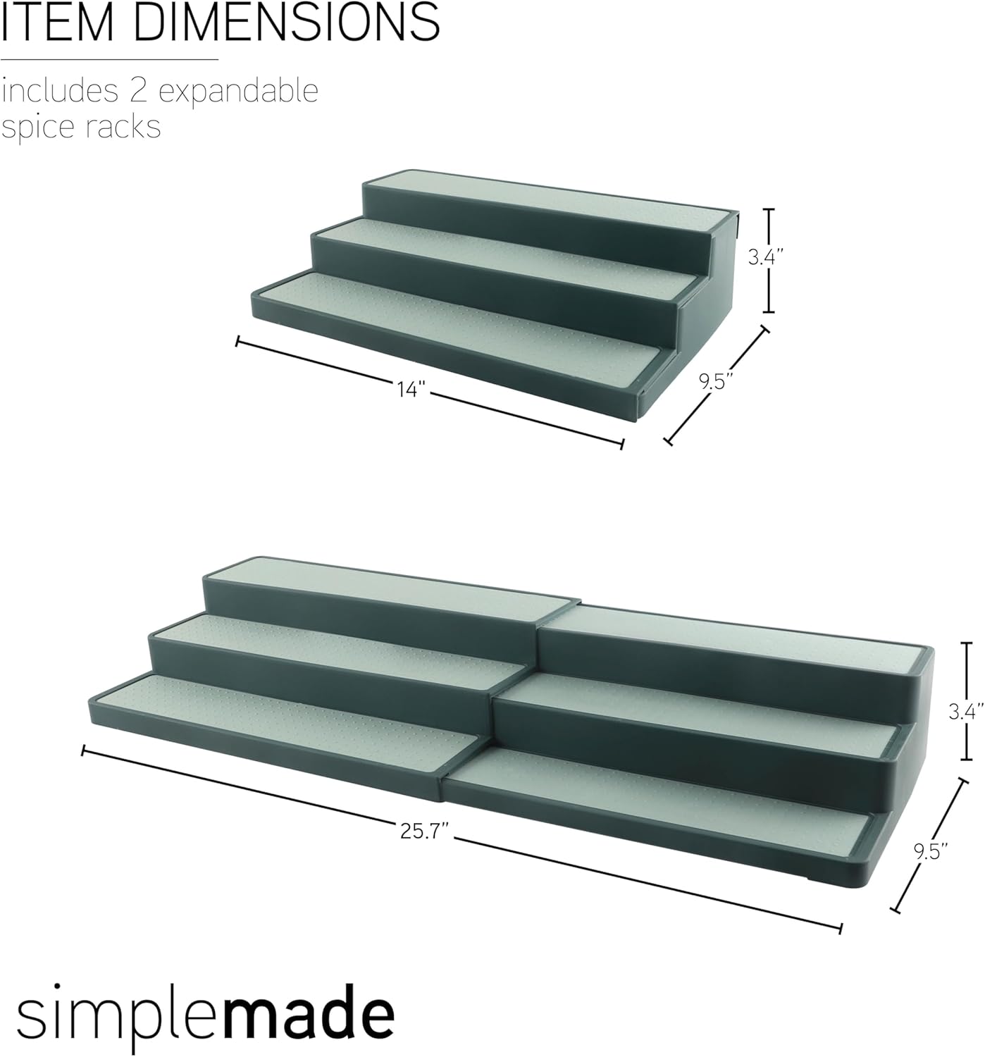 SIMPLEMADE 3-Tier Spice Rack Organizer - Versatile Storage Shelf for Kitchen, Bathroom, Bedroom & Office, Set of 2, Expandable Sage