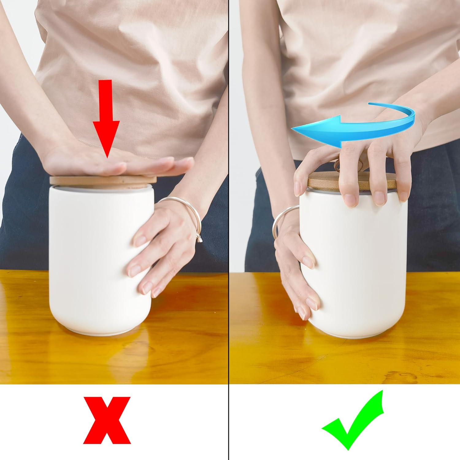 • 【Easy to Use and Clean】Please don't directly to direct downward pressure on the lid, The best way to seal is to twist the lid and press it at the same time.The sugar flour container set for counter set features a large diameter jar mouth design, which can be quickly and easily filled or cleaned. The ceramic kitchen canisters is dishwasher safe, and the wooden lid can only be hand washed and needs to be wiped dry in time.