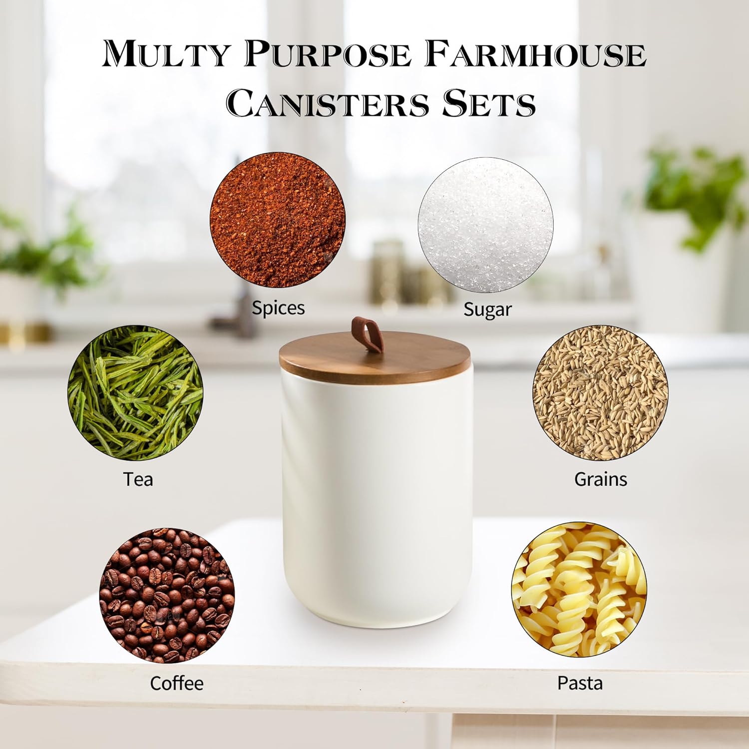 • 【Thoughtful Gift】Our farmhouse canisters sets for the kitchen is a great and thoughtful gift. It is a thoughtful housewarming, Valentine's Day, birthday, Mother's Day, Christmas gift for yourself or your dear wife, family, friends, colleagues, classmates. Our tea coffee sugar canister set can match any home decoration from farmhouse to modern, adding beauty to your home