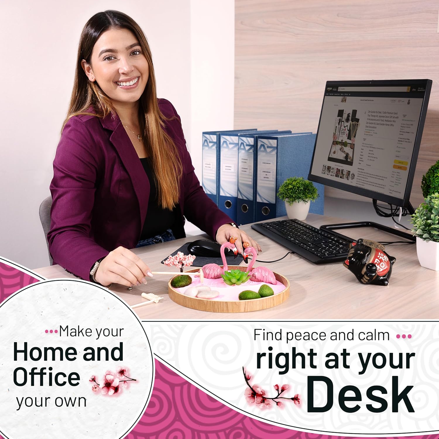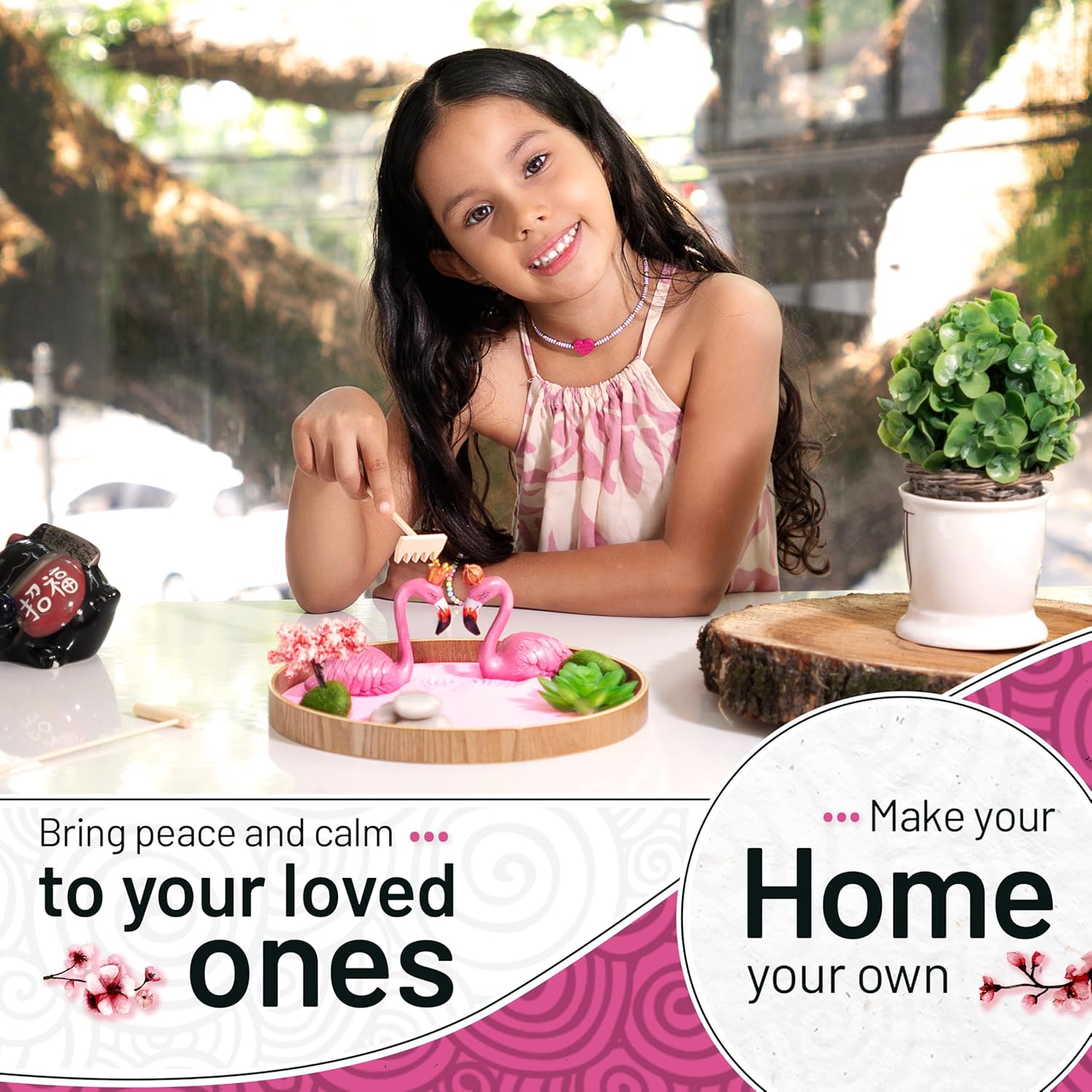 • PERFECT FOR FLAMINGO AND PINK LOVERS: Elevate your space with this Japanese style zen garden featuring exquisite pink sand and adorable flamingo figurines; it's the ultimate pink decor that adds a touch of tranquility and charm, ideal for pink aesthetic room decor enthusiasts.