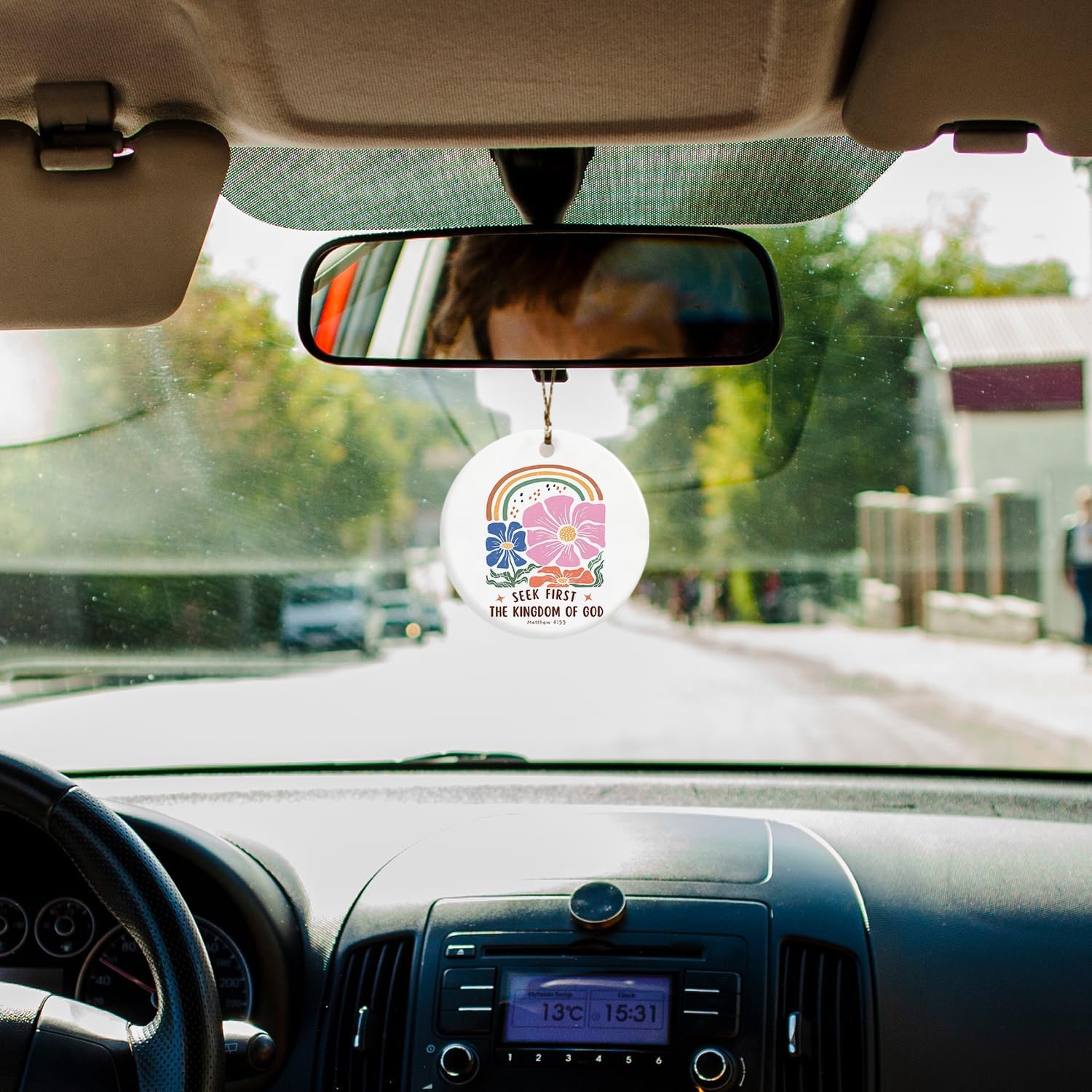 Christian Ornaments, Matthew 6:33 Seek First Scripture 70s Groovy Retro Floral Ceramic Ornament Keepsake Decorations, Christian Gifts for Women Teen Girls