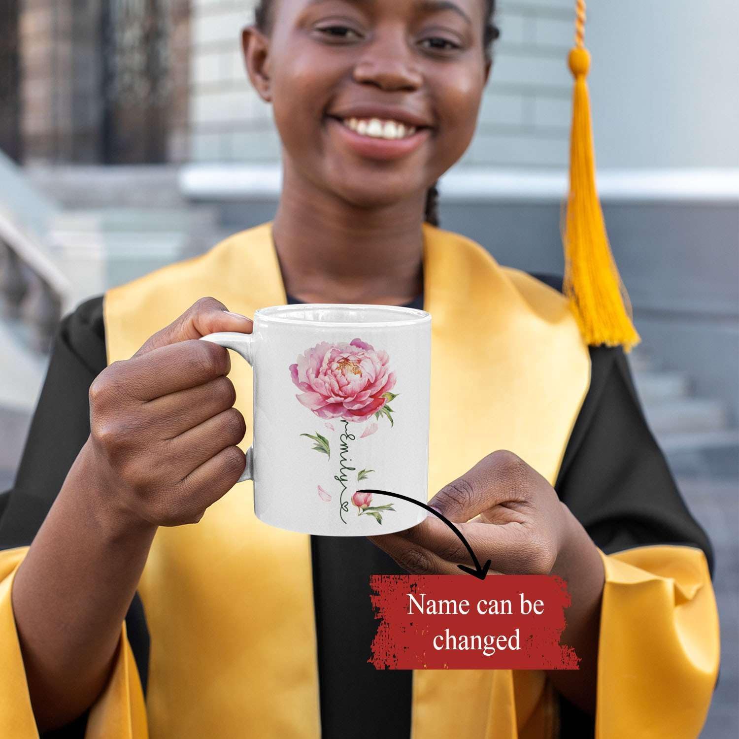 Flower Design Mug With Custom Name, Unique Peony Flower Ceramic Cup, Customized Flower Lover Coffee Mug, Personalized Peony Themed Decorative Cup, Novelty Peony Accent Mug 11oz 15oz