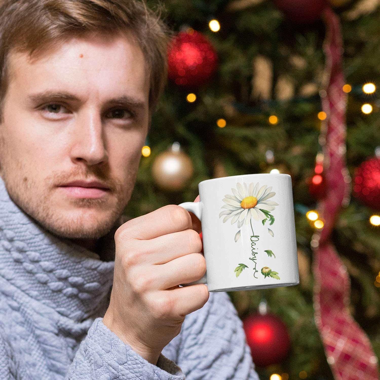 Lovely Daisy Flower Ceramic Mug, Customized Name On Floral Coffee Cup, Personalized Floral Accent Mug 11oz 15oz, Custom Daisy Lover Cup, Gift For Friend And Coworker, Novelty Daisy Mug
