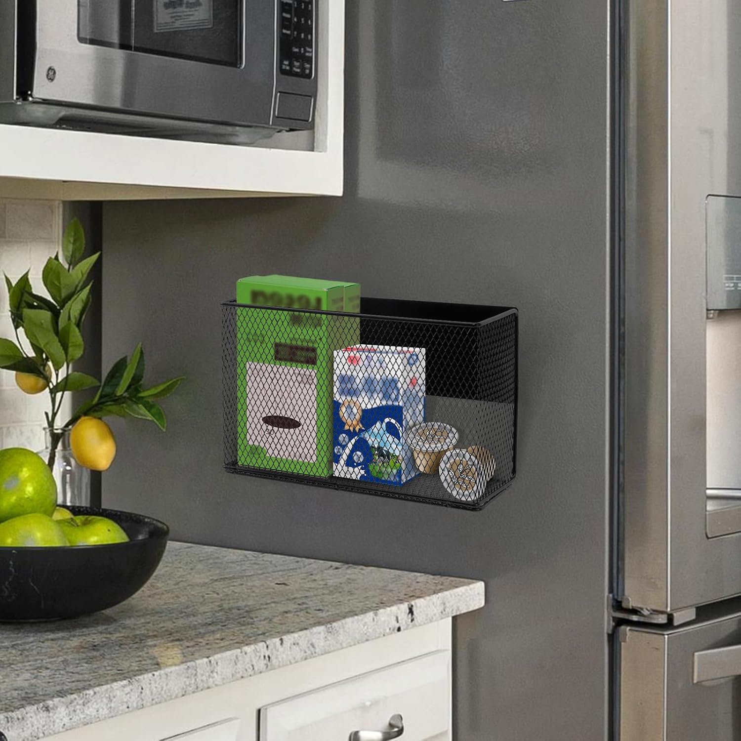 Black Magnetic Basket - Refrigerator Spice Rack & File Holder Locker Organizer - Wire Mesh Magnetic Shelf for Kitchen Storage