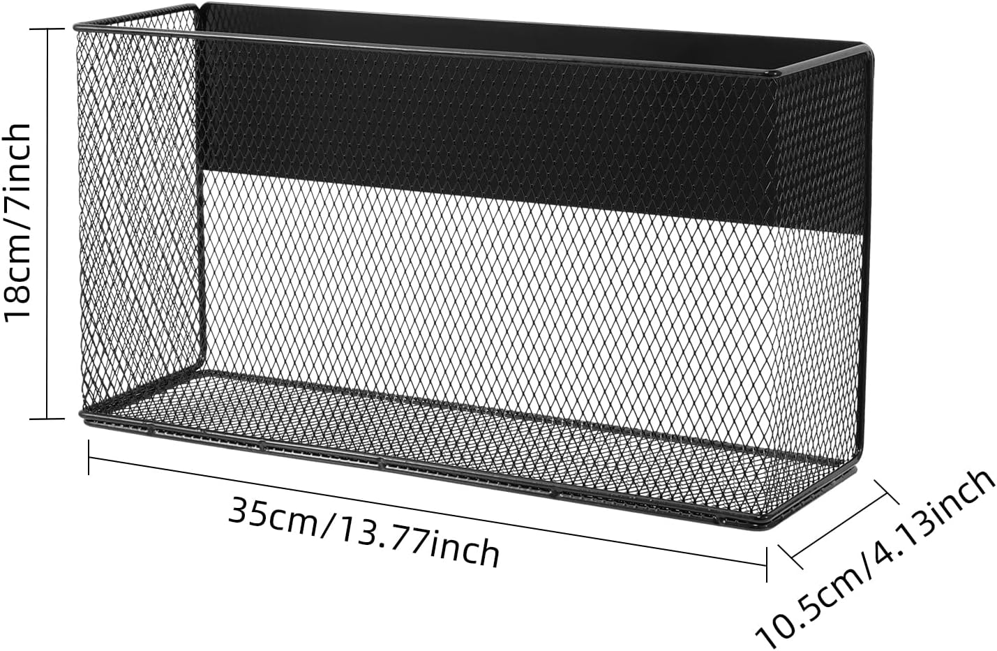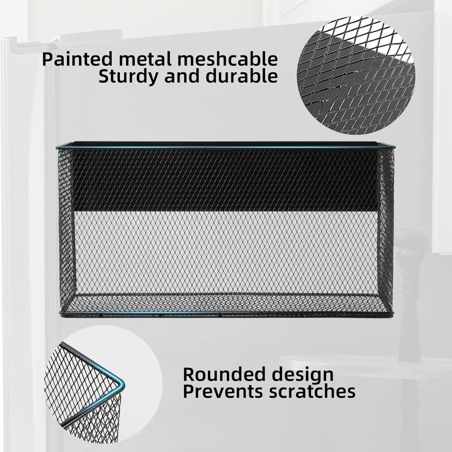 • Multi-purpose: The magnetic basket for fridge measuring 13.77" × 4.13" ×7.08 inches can not only store paper, magazines and newspapers, but also office supplies such as markers, pens, scissors, etc. It can also store condiments, preserving film, cereal boxes and other kitchen supplies
