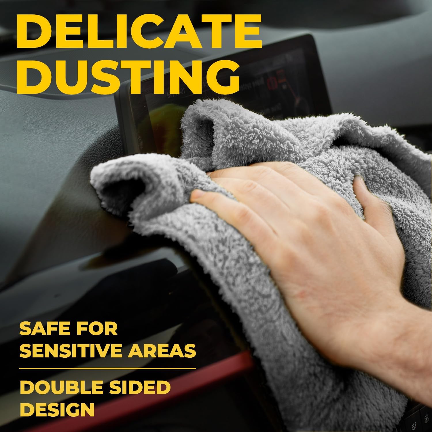 • EDGELESS MICROFIBER TOWEL – These premium drying towels car detailing will not scratch delicate surfaces, unlike similar products with stiff-seamed edges. The double-sided scratch-free design without hard seams makes this microfiber car cleaning cloth safe for buffing and coating application.