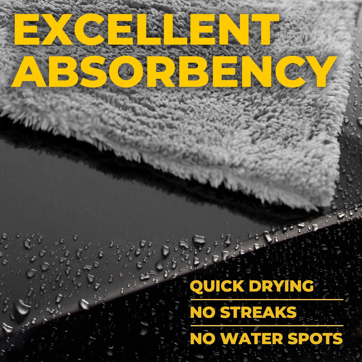 • EXCELLENT ABSORBANCY – Our premium thick microfiber cleaning cloth easily absorbs and holds water without leaving streaks or spots. These exceptionally soft microfiber cleaning cloths for cars soak up liquids and perfectly shine your sweet ride.